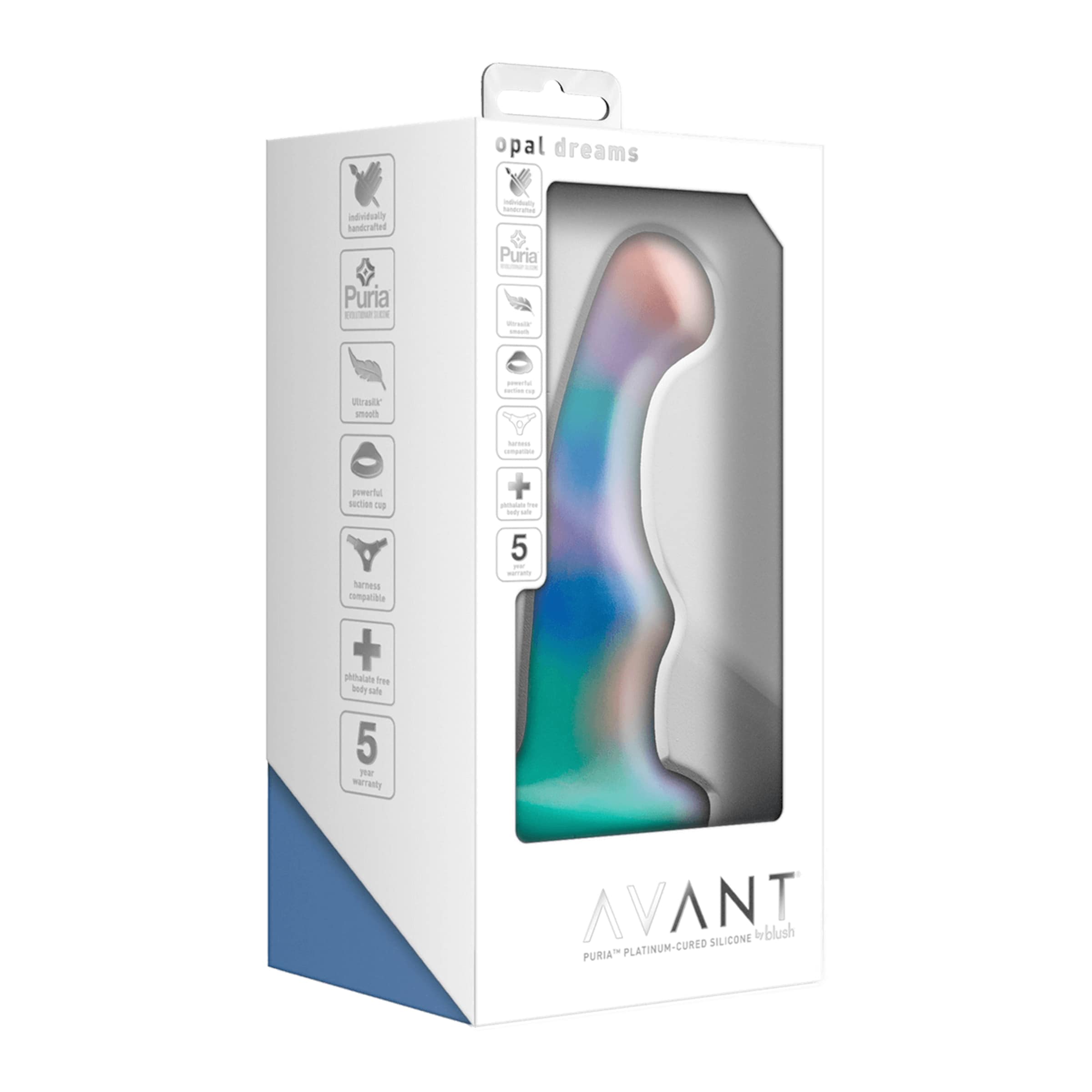 Entdecke pure Sinnlichkeit mit dem Opal Dreams G-Punkt-Dildo aus der Avant Kollektion von Blush Novelties. Mit einer Länge von 15,2 cm, einer einführbaren Länge von 13,9 cm und einer Breite von 3,8 cm ist dieses handgefertigte Meisterwerk perfekt auf Deine Bedürfnisse abgestimmt. Der gebogene Schaft und der angenehm breite Kopf bieten gezielte Stimulation des G-Punkts oder P-Punkts, sodass Du in neue Dimensionen der Lust eintauchen kannst. Hergestellt aus hochwertigem Puria™ platinvernetzem Silikon, fühlt sich Opal Dreams dank der Ultrasilk™-glatten Oberfläche unglaublich sanft und realistisch an.