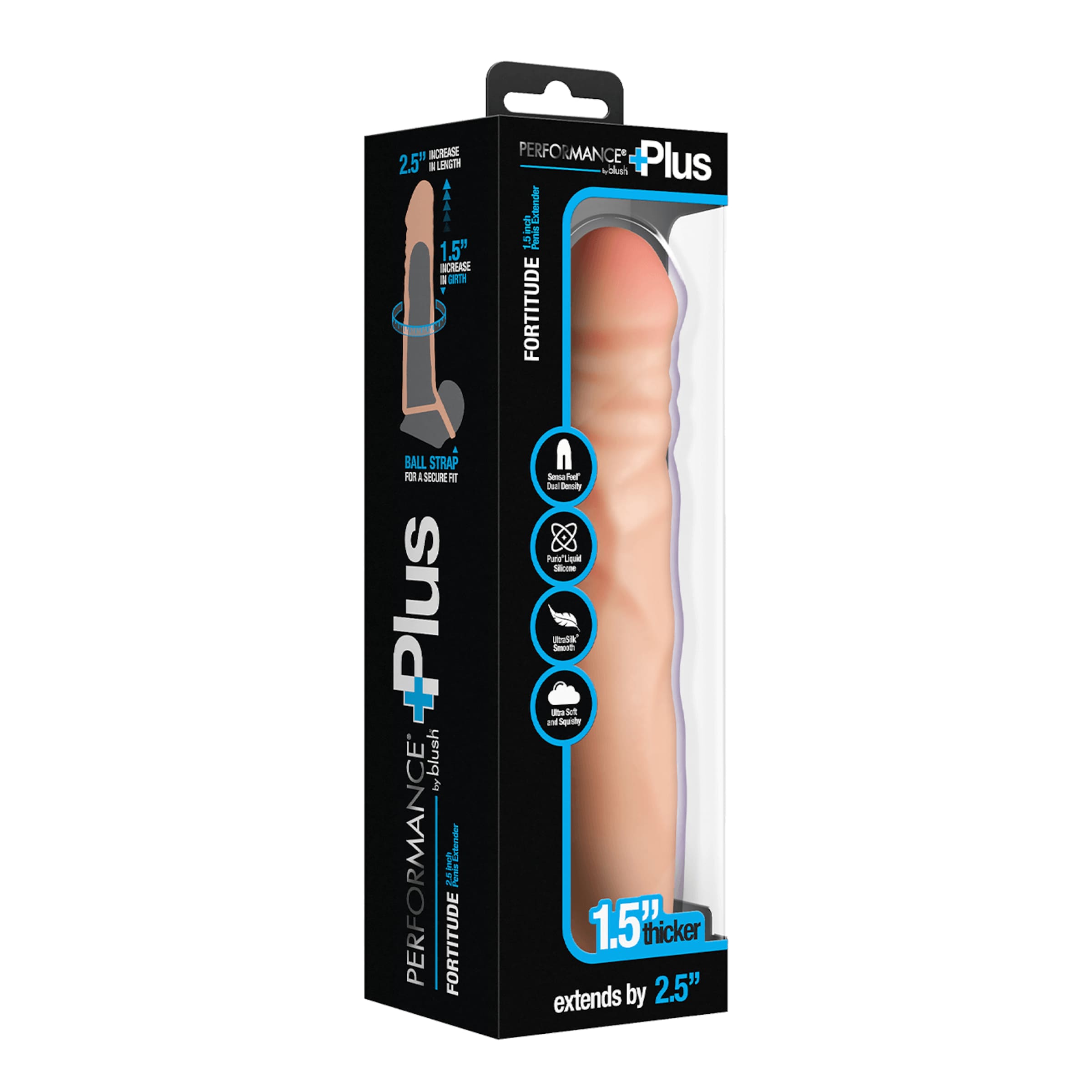 Bereit für den nächsten Level? Mit dem 2.5 Inch Silicone Penis Xtender aus der Performance Plus Kollektion von Blush Novelties verwandelst Du Deine Lust in ein intensives Erlebnis. Die realistische Penishülle verleiht Dir 6,3 cm zusätzliche Länge und satte 3,8 cm mehr Umfang – für eine beeindruckende Performance, die Deinen Partnerin garantiert aus den Socken haut. Mit einer Gesamtlänge von 17,7 cm und einer einführbaren Länge von 11,4 cm sitzt das Toy dank des dehnbaren Ball Straps fest und sicher – auch wenn es heiß hergeht.