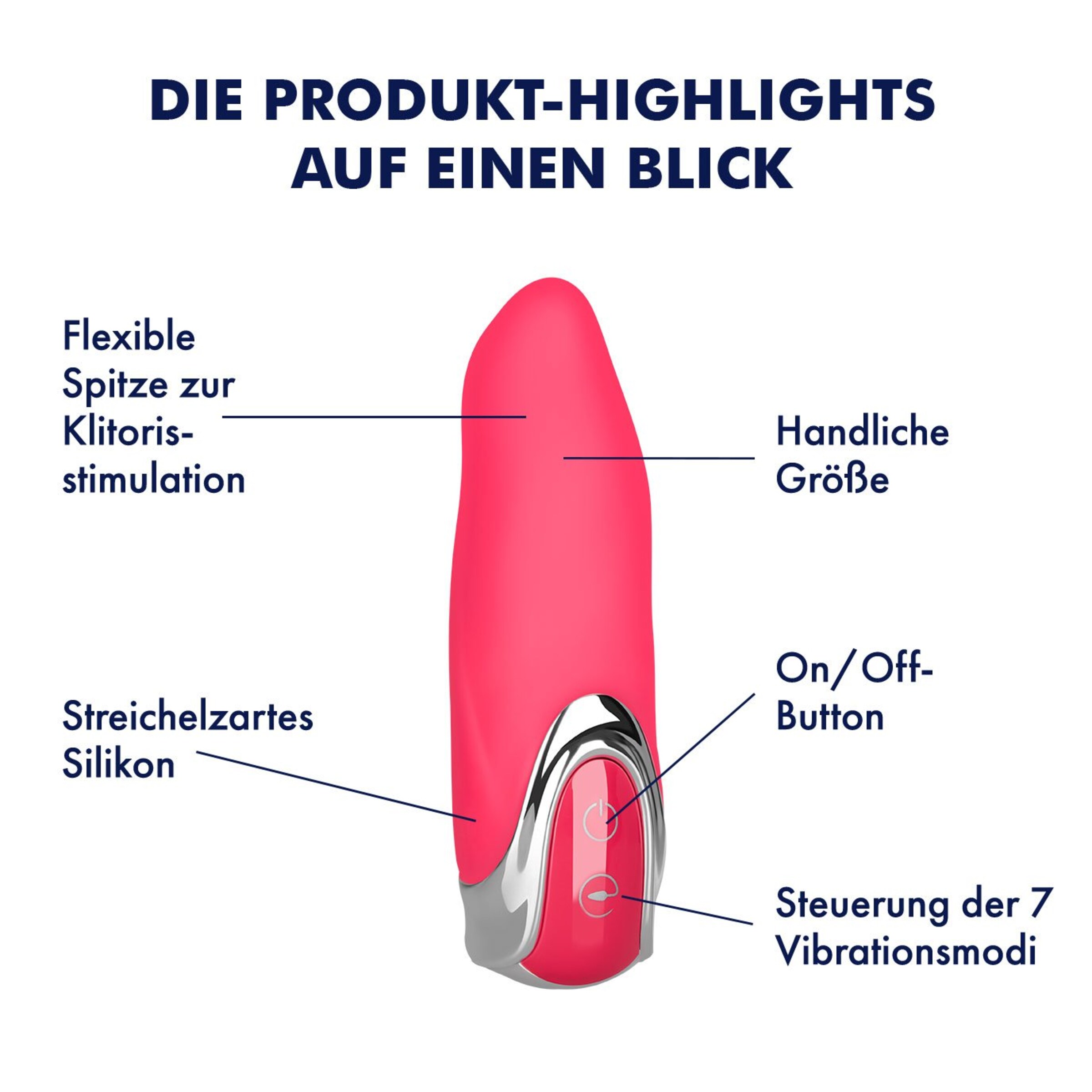 Dieser wasserdichte Auflegevibrator aus hauchzartem Silikon ist ein Must-have für alle, die auch Unterwegs nicht auf sinnliche Stimulation verzichten wollen. Der pinkfarbene Vibrator überzeugt mit einer nahtlosen Verarbeitung sowie einer handtaschengerechten Größe. In seinem Inneren versteckt sich ein kraftvoller, leiser Motor, der es versteht, Deinen Hotspot zu verwöhnen. Wähle aus 7 abwechslungsreichen Vibrationen aus - von sanft bis kraftvoll - und lass Dich auf der Welle der Lust in Richtung Höhepunkt treiben.