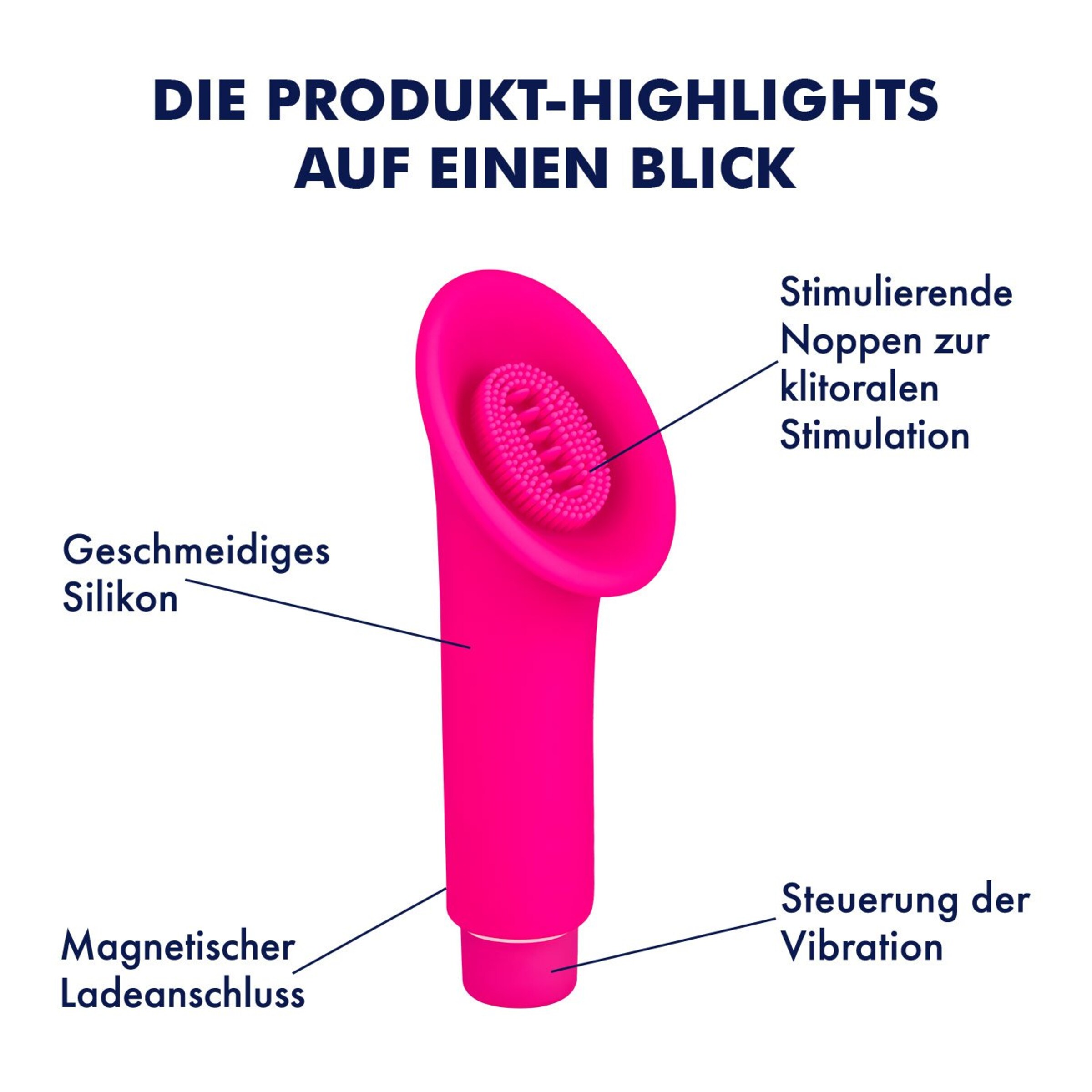 Die ergonomische Ausführung lässt Dein Lieblingstoy nicht nur schön aussehen, sondern es wickelt Dich zudem mit seiner edlen, glatten Oberfläche auch ohne Umschweife um den Finger. Lasse Dich von dem breiten Klitorisreizer in den siebten Himmel entführen. Die erotisch genoppte Oberfläche beschert Dir dabei ein sanftes Prickeln.