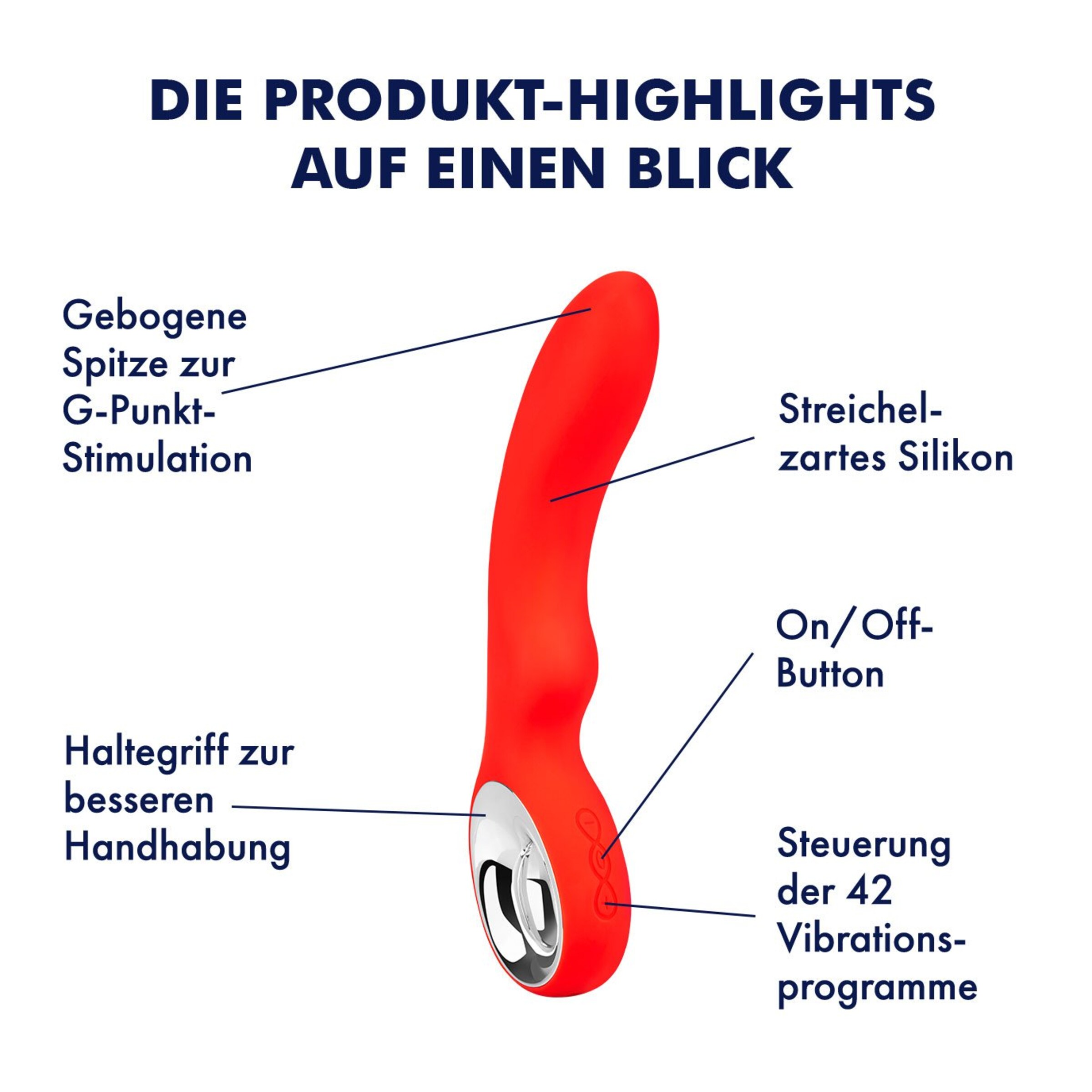 Unwiderstehlich ist dieser luxuriöse Sex-Gott, der Dich schon beim Einführen mit seiner glatten, geschmeidigen Silk-Touch Oberfläche betört. Der schlanke, biegsame Schaft gleitet sanft in Dich hinein, um mit seiner voluminösen, gebogenen Spitze gezielt Deinen G-Punkt zu stimulieren. Die ausgeprägte Wölbung am Schaftanfang massiert dabei intensiv Deine Klitoris… einfach himmlisch!