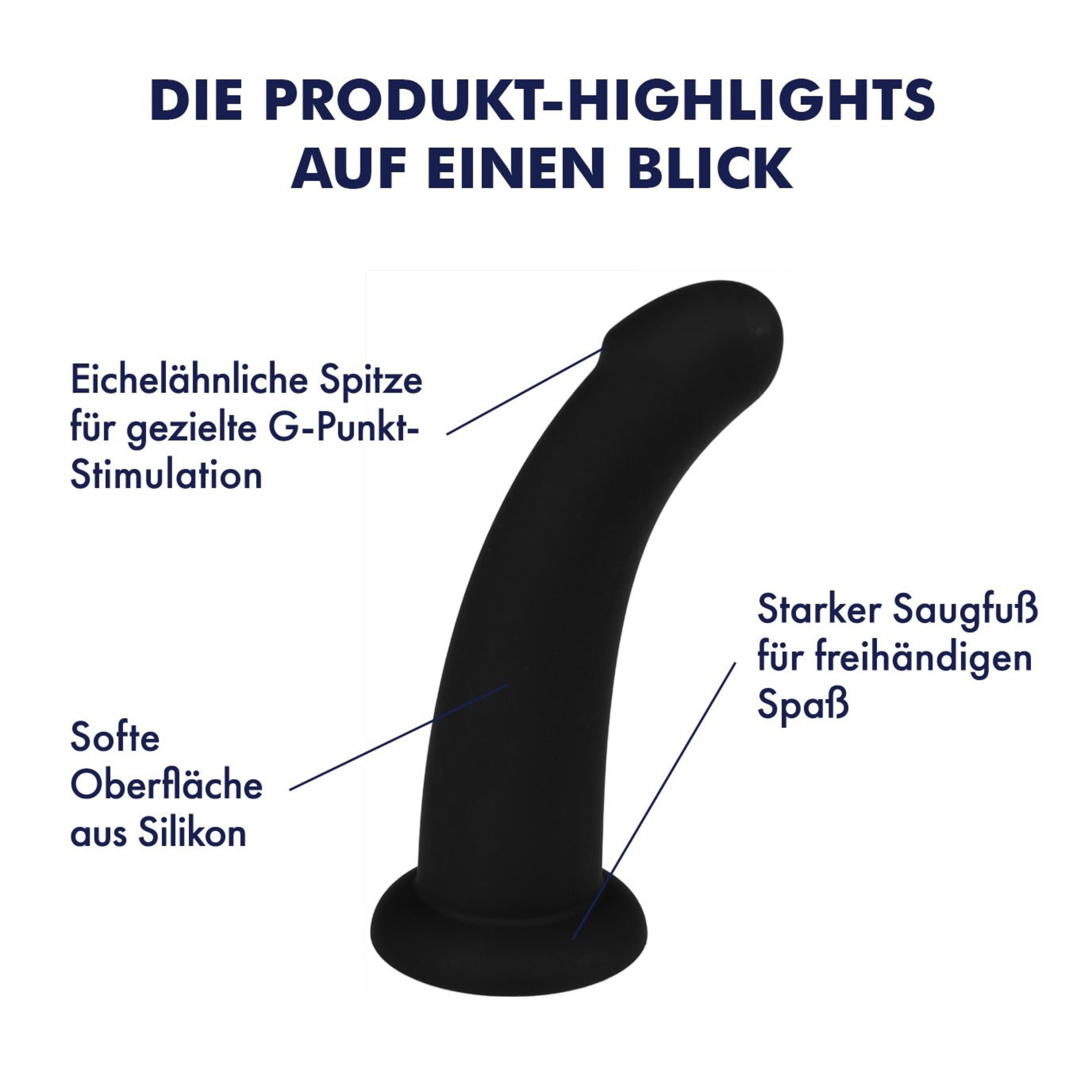 Mit seinem minimalistischen Design in edlem Schwarz wird der elegante Dildo aus hautfreundlichem Silikon zu Deinem stilvollen Lustbegleiter. Seine glatte, matte Oberfläche, die gebogene Form und die betonte, eichelähnliche Spitze ermöglichen eine gezielte G-Punkt- oder P-Punkt-Stimulation. Mit einer einführbaren Länge von 14 cm, einer Gesamtlänge von 17 cm und einem maximalen Durchmesser von 3,7 cm bietet er genau die richtige Größe für intensive Solosessions, leidenschaftliches Partnerplay oder das Spiel mit dem Harness. Der starke Saugnapf sorgt für freihändigen Genuss – ganz wie Du ihn Dir wünschst.