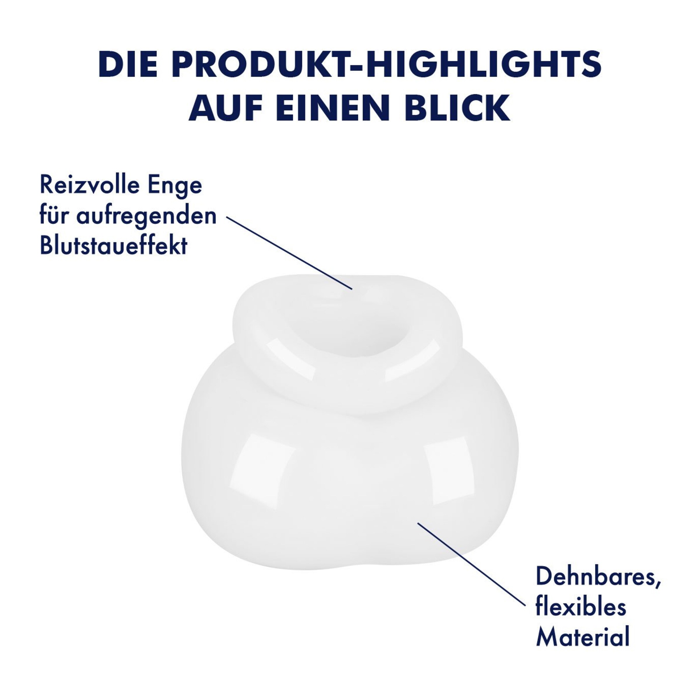 Sperrt den bösen Buben hervorragend ein. Keine Beanstandungen, außer, dass man es wirklich vor der ersten Benutzung sehr gut reinigen muss. Elastisch und nicht schmerzvoll auf die Hoden aufzuziehen. Perfekte Ergänzung ist, meiner Meinung nach, der Peniskäfig aus dem gleichen Material.