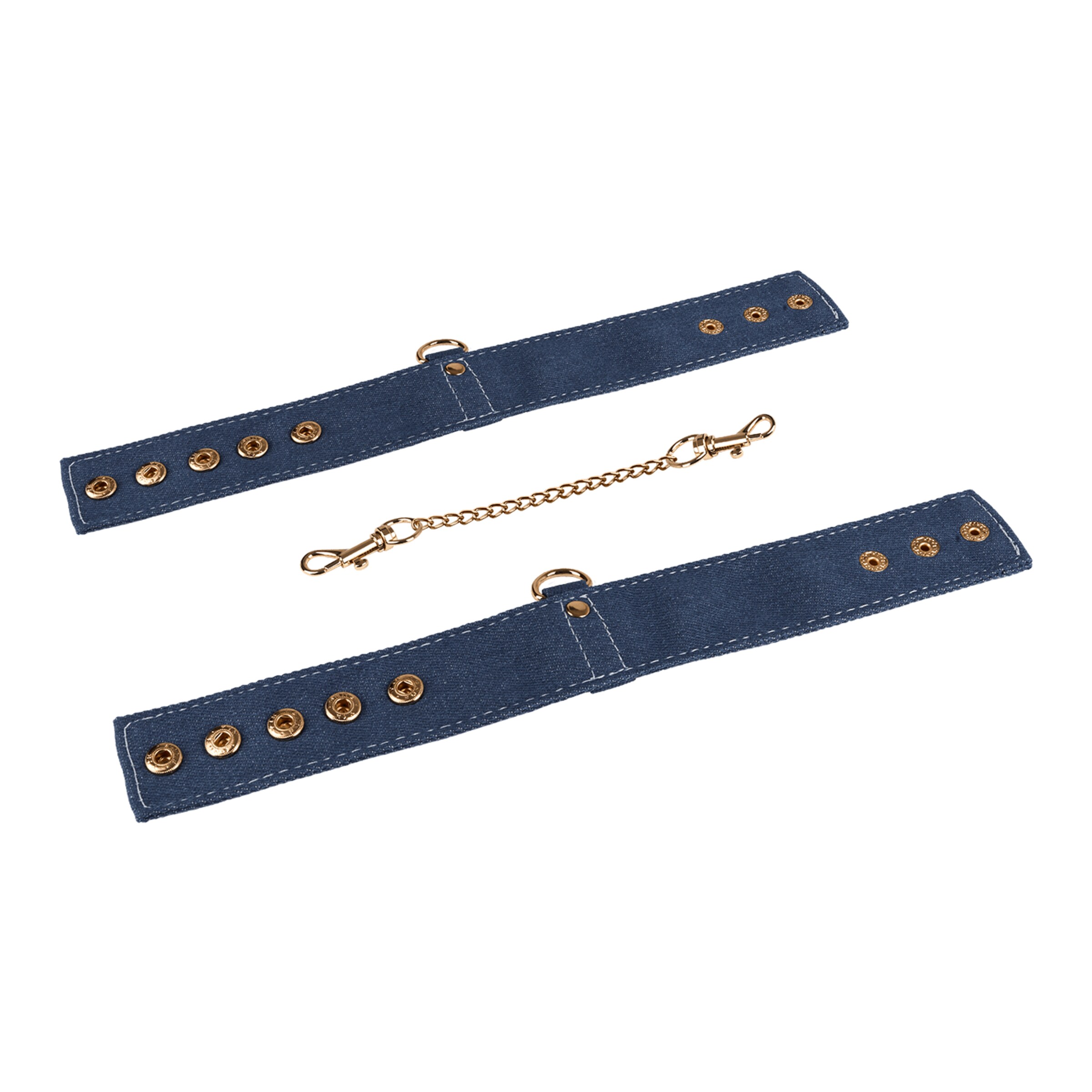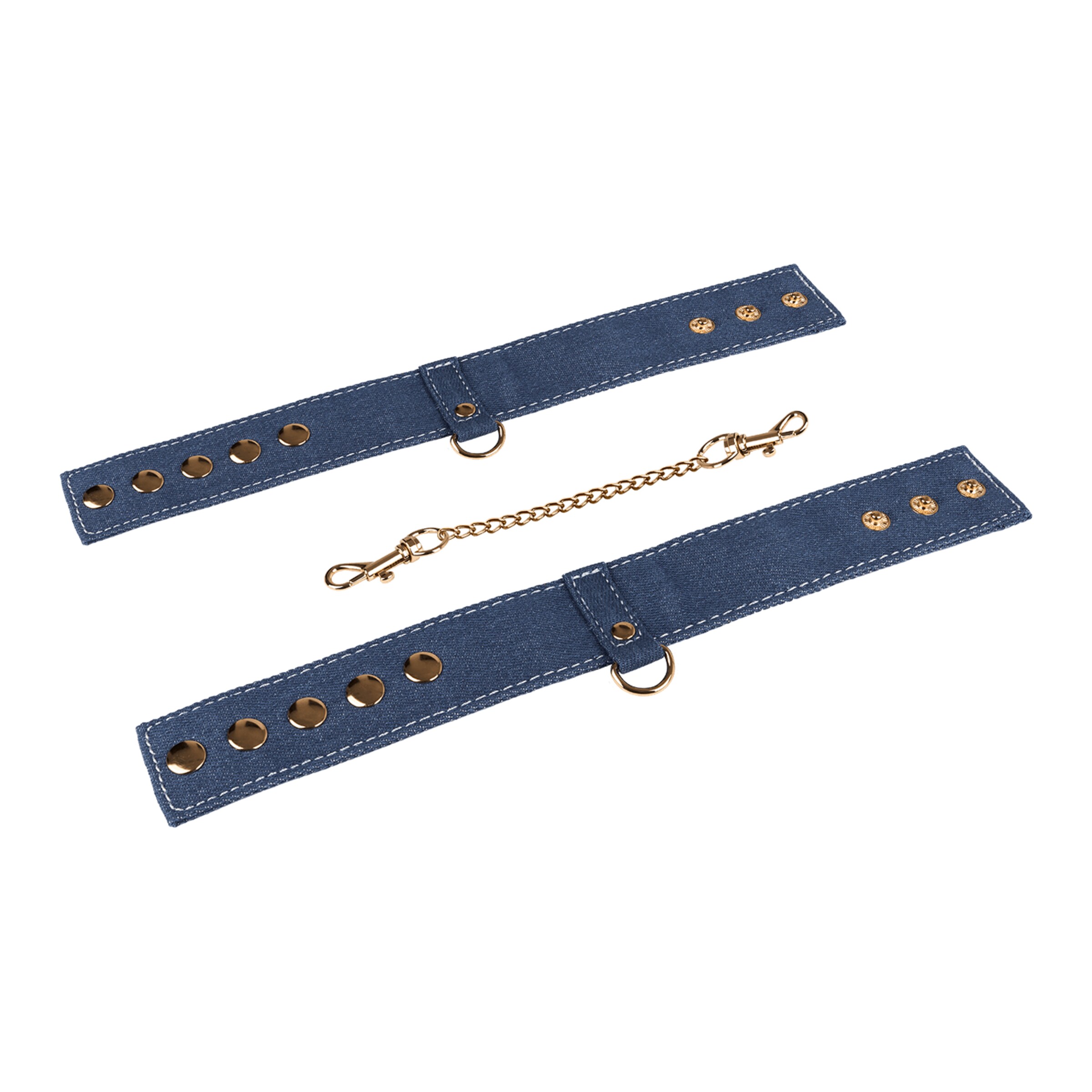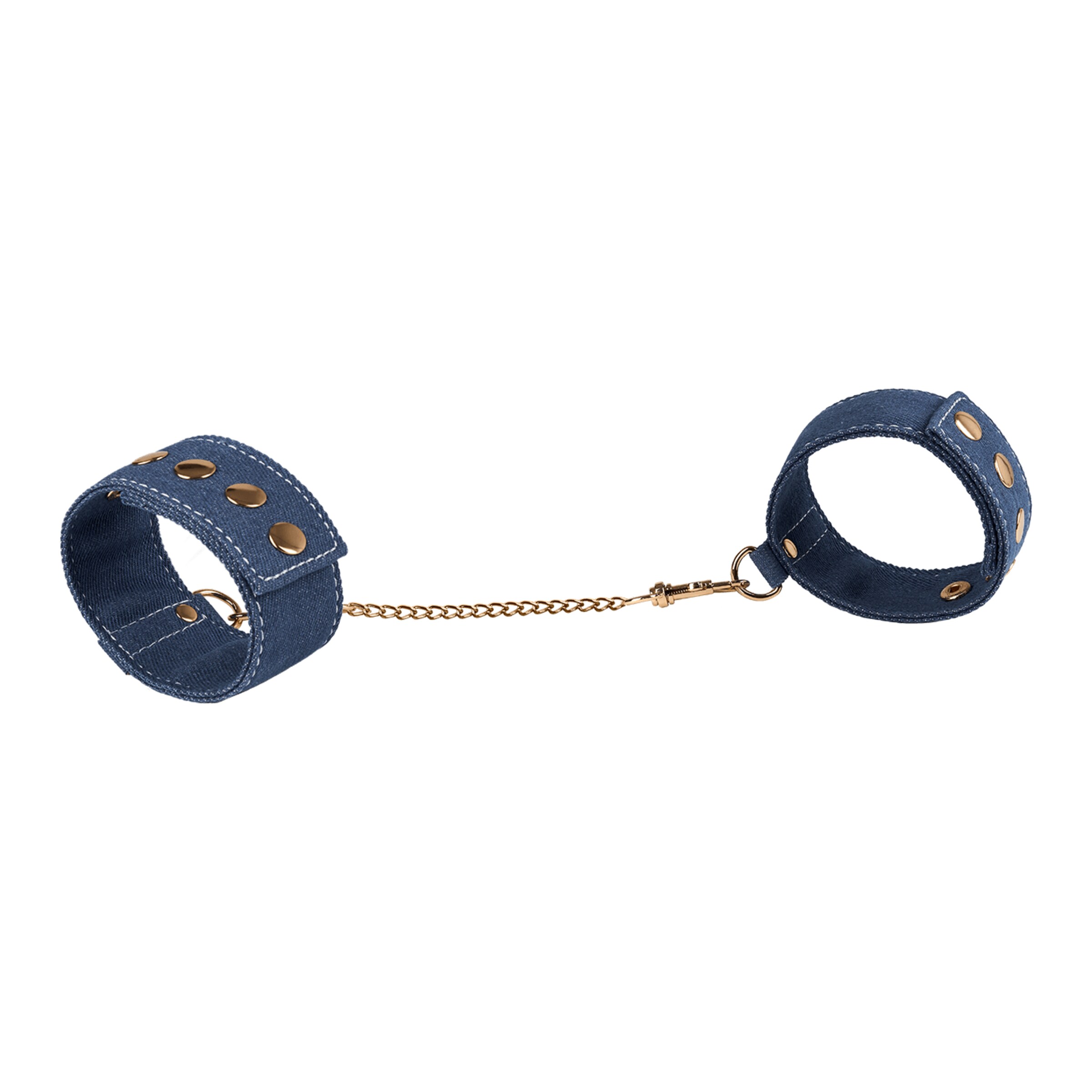 Diese Fesselmanschetten im coolen Jeansblau mit goldenen Akzenten sind Dein stylisher Einstieg in die BDSM-Welt. Mit 4 cm Breite liegen sie angenehm an und bieten gleichzeitig verlässlichen Halt – ob an Händen oder Füßen. Über Druckknöpfe passt Du die Größe im Handumdrehen an, damit alles sicher sitzt und nichts einschneidet.