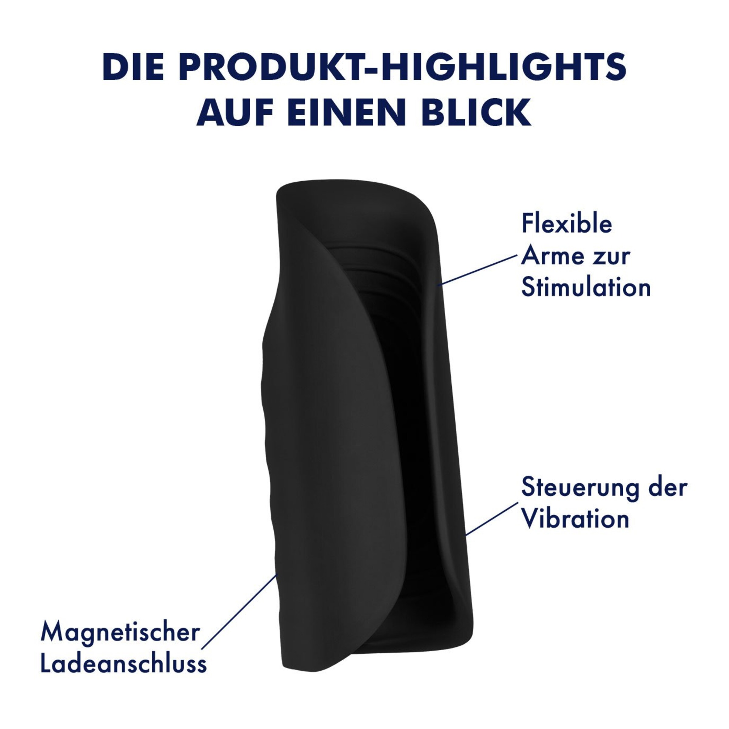 Sehr guter und vor allem auch qualitativ hochwertiger Masturbator! Die Flexibiltät macht es super angenehm um den Penis herum, er wird schön umschlossen ohne dass es einschnürt oder einschneidet. Die Vibrationen sind sehr stimulierend und abwechslungsreich, bringt einem einfach perfekt zum Höhepunkt!