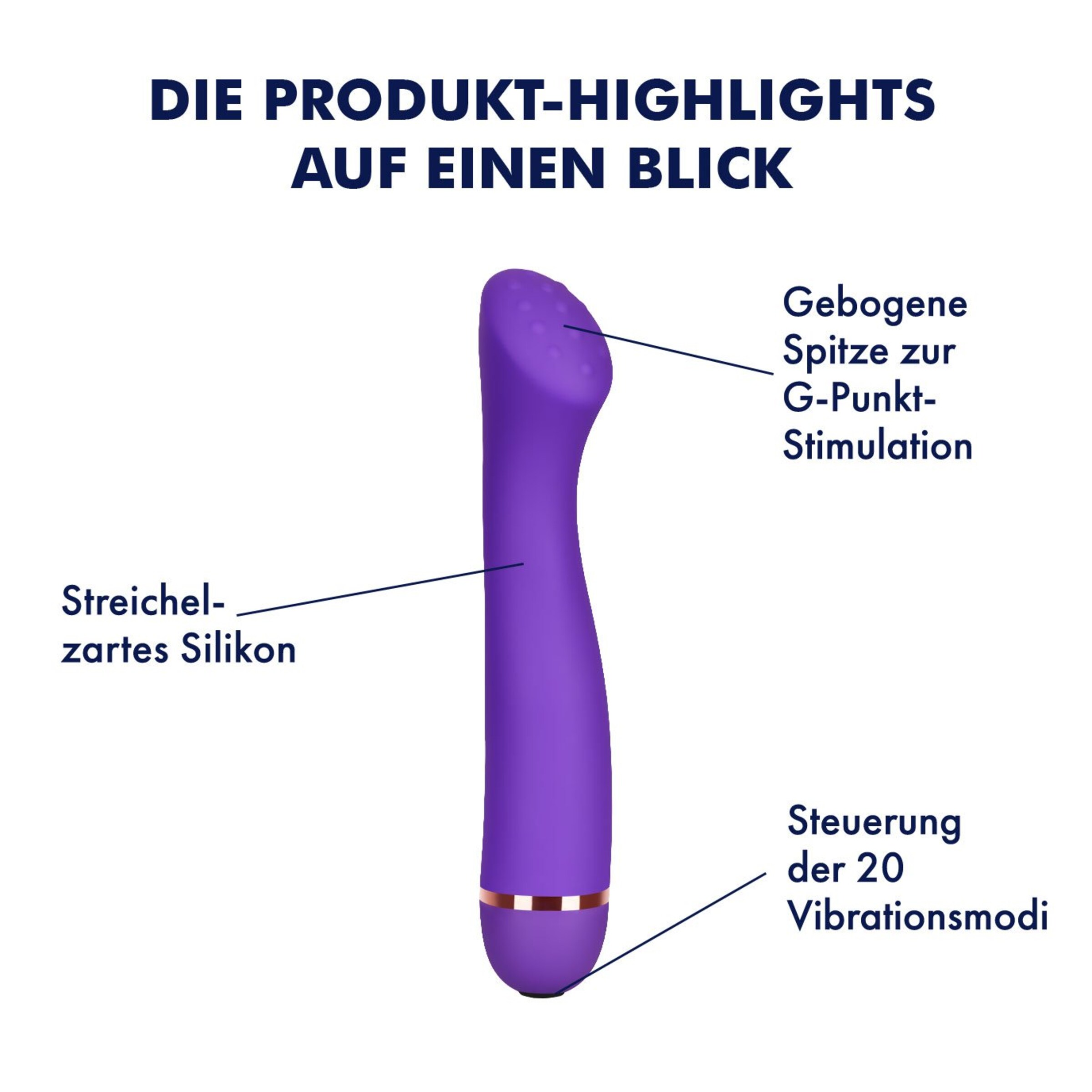 Elegant gebogen präsentiert sich dieser moderne G-Punkt-Vibrator in der Farbe Lila. Besonders die Stimulation des G-Punktes erreicht mit der einzigartigen Form der Spitze ungeahnte Höhepunkte. Der Schaft ist an der Spitze ergonomisch gebogen. Die Spitze massiert durch ihre flache Beschaffenheit und die genoppte Struktur zielgenau und kraftvoll. Zusätzlich verwöhnt Dich eine intensive Vibration in 20 unterschiedlichen Programmen. Dank seiner wasserdichten Verarbeitung unternimmt der Freudenspender auch gerne Ausflüge unter die Dusche mit Dir.