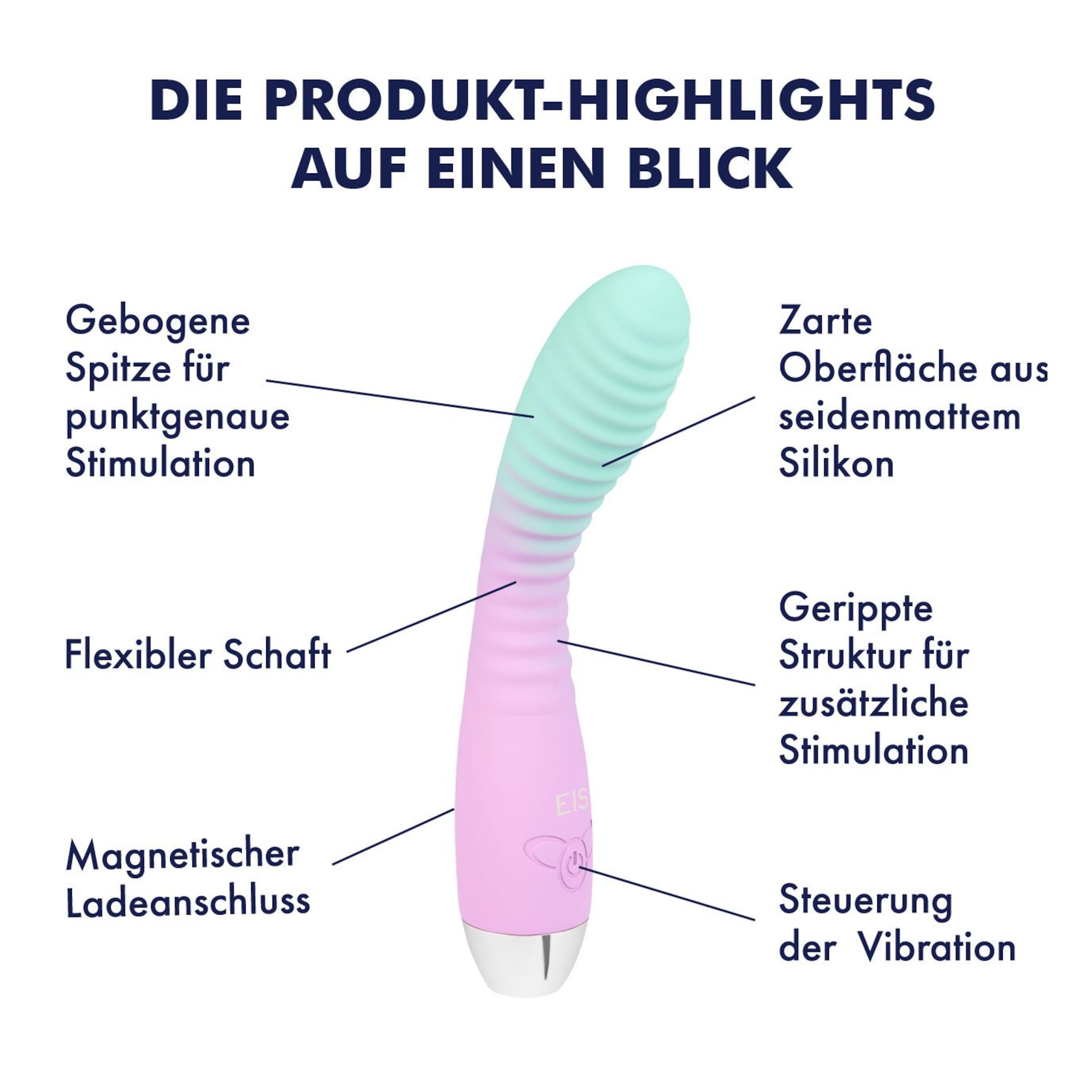Entdecke eine neue Dimension der Lust mit dem G-Spot Vibrator von EIS. Dieser elegante Vibrator besticht nicht nur durch seine Gesamtlänge von 19,4 cm und einer einführbaren Länge von 14,2 cm, sondern auch durch seinen aufregenden Farbverlauf von Pink nach Türkis. Gefertigt aus hautfreundlichem Silikon, passt sich dieser flexible Liebeshelfer perfekt Deinen Bedürfnissen an. Mit einem maximalen Durchmesser von 3,2 cm und einer gebogenen Form, die speziell zur G-Punkt-Stimulation entwickelt wurde, garantiert dieser Vibrator intensive Momente der Freude.