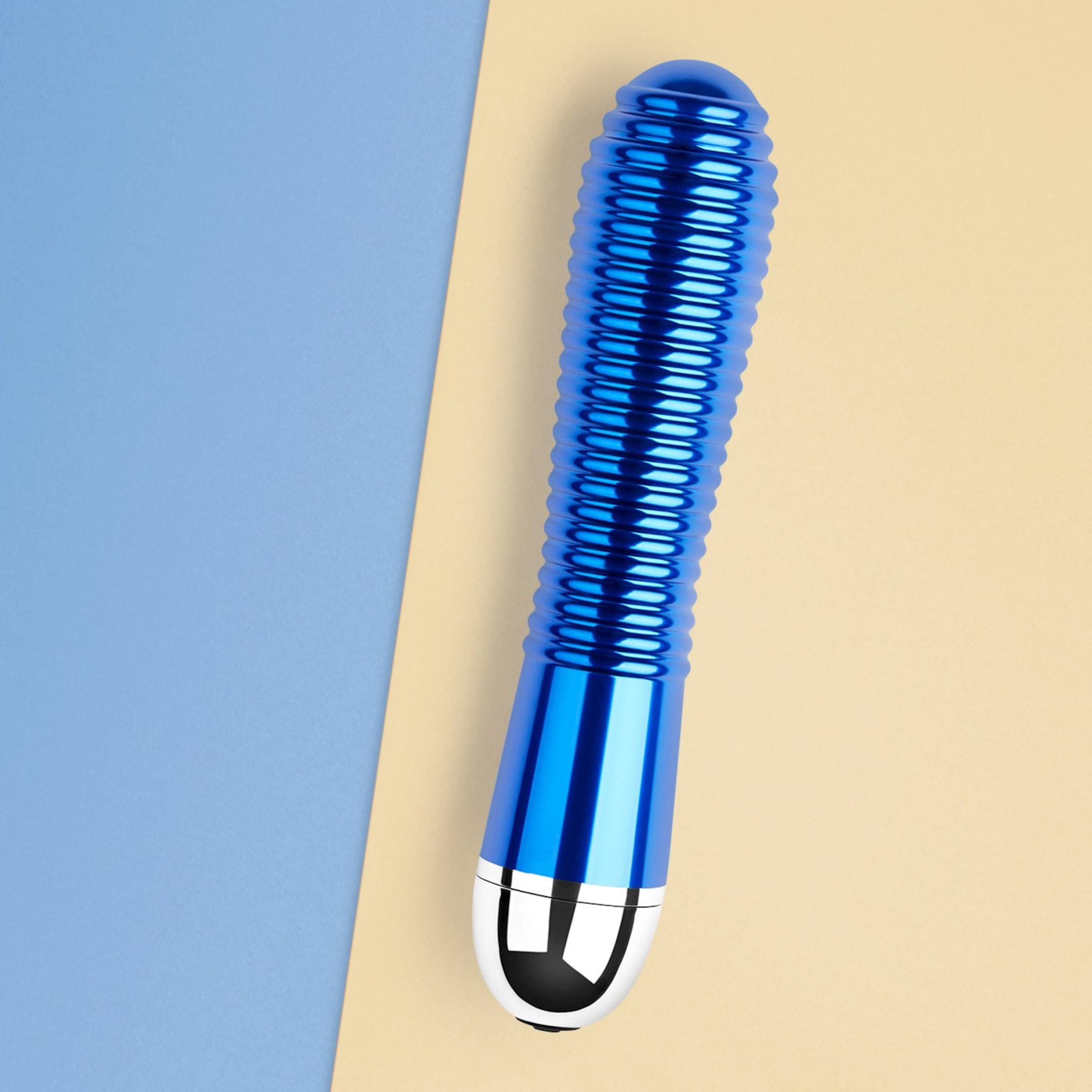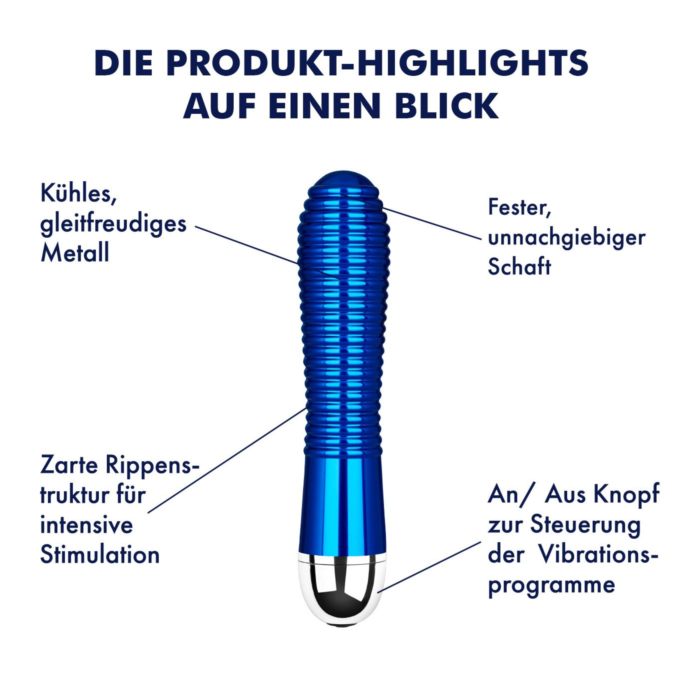 Dieser aufregend gerippte Vibrator aus kühlem Metall verwöhnt Dich mit erregender Unnachgiebigkeit. Seine kühle, besonders gleitfreudige Oberfläche lädt zu inneren Massagen der experimentierfreudigen Art ein: Du kannst die Temperatur des Materials unter warmem oder kaltem Wasser verändern und Dich auf neue, intensive Gefühlserlebnisse freuen. Dabei sorgen die strukturierte, gerade Form und 20 Vibrationsprogramme für jede Menge Spaß und Abwechslung. Mit einem Gleitmittel Deiner Wahl wird das Spiel noch intensiver! Dank der wasserdichten Verarbeitung kannst Du den harten Lustbringer auch unter der Dusche zum Einsatz kommen lassen. Mit dem Knopf an der Basis wechselst Du nach Belieben zwischen 3 Vibrationsintensitäten und 17 Rhythmen.