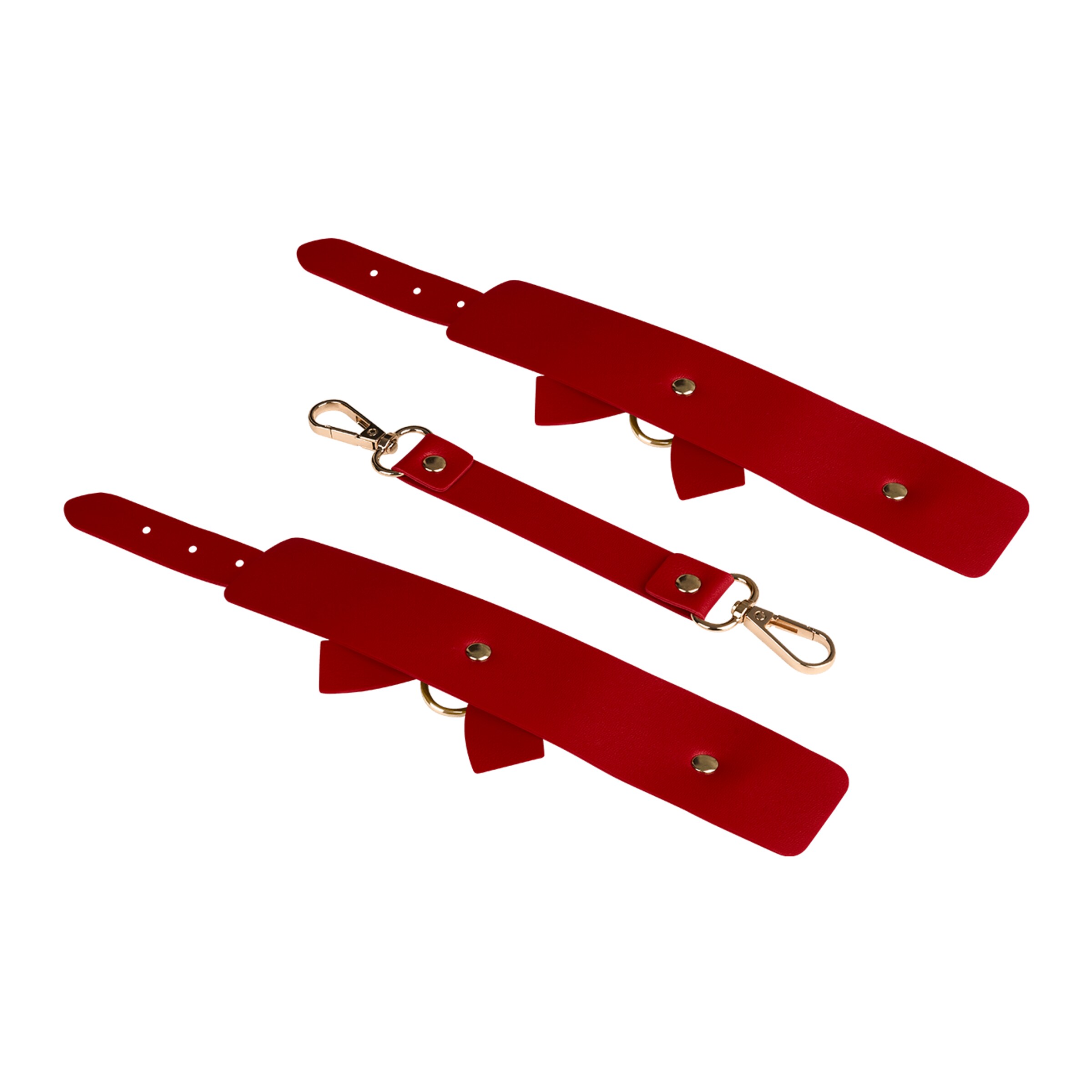 Die Handfesseln mit Schleifen von EIS verbinden verführerische Ästhetik mit spielerischer Kontrolle und sind perfekt für aufregende Paarmomente. Die roten Handgelenkfesseln mit dekorativen Schleifen setzen einen femininen, sinnlichen Akzent und sorgen schon beim Anblick für ein Kribbeln der Vorfreude. Dank der größenverstellbaren Dornschließen sitzen die Fesseln angenehm am Handgelenk und bieten dir Komfort bei jeder Bewegung – ideal für Vorspiel, Rollenspiele und leichte BDSM-inspirierte Abenteuer.