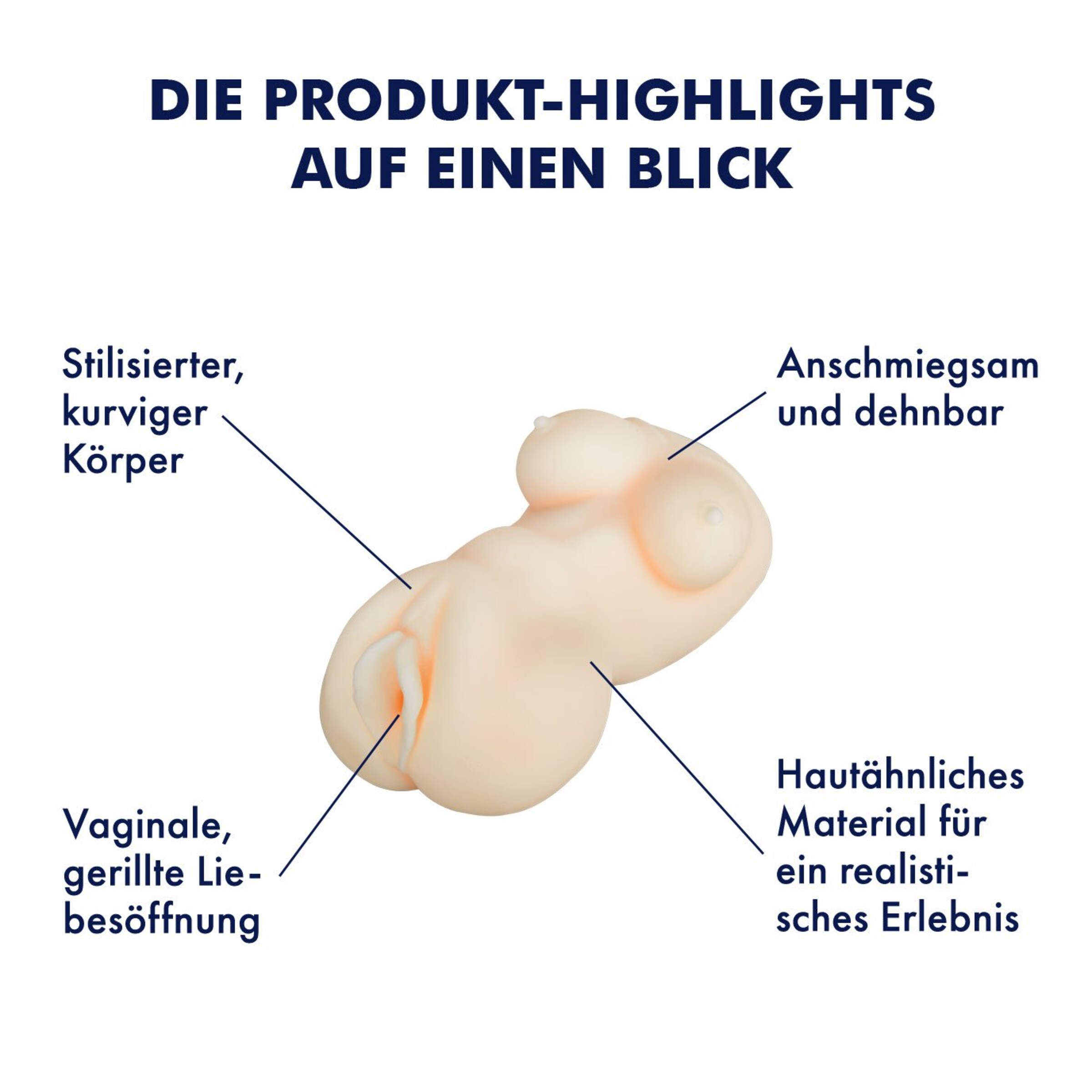 Der kurvige Körper dieses handlichen Masturbators lädt Dich zu purer Lust ein. Mit seiner hautähnlichen Beschaffenheit bietet er Dir gefühlsechte Momente. Weich und dehnbar schmiegt er sich an Dein bestes Stück und massiert es mit aufregender Rillenstruktur eindrucksvoll. Die üppigen Brüste und zarten Schamlippen regen Deine Fantasie an und bieten Dir realitätsnahe Erlebnisse.
