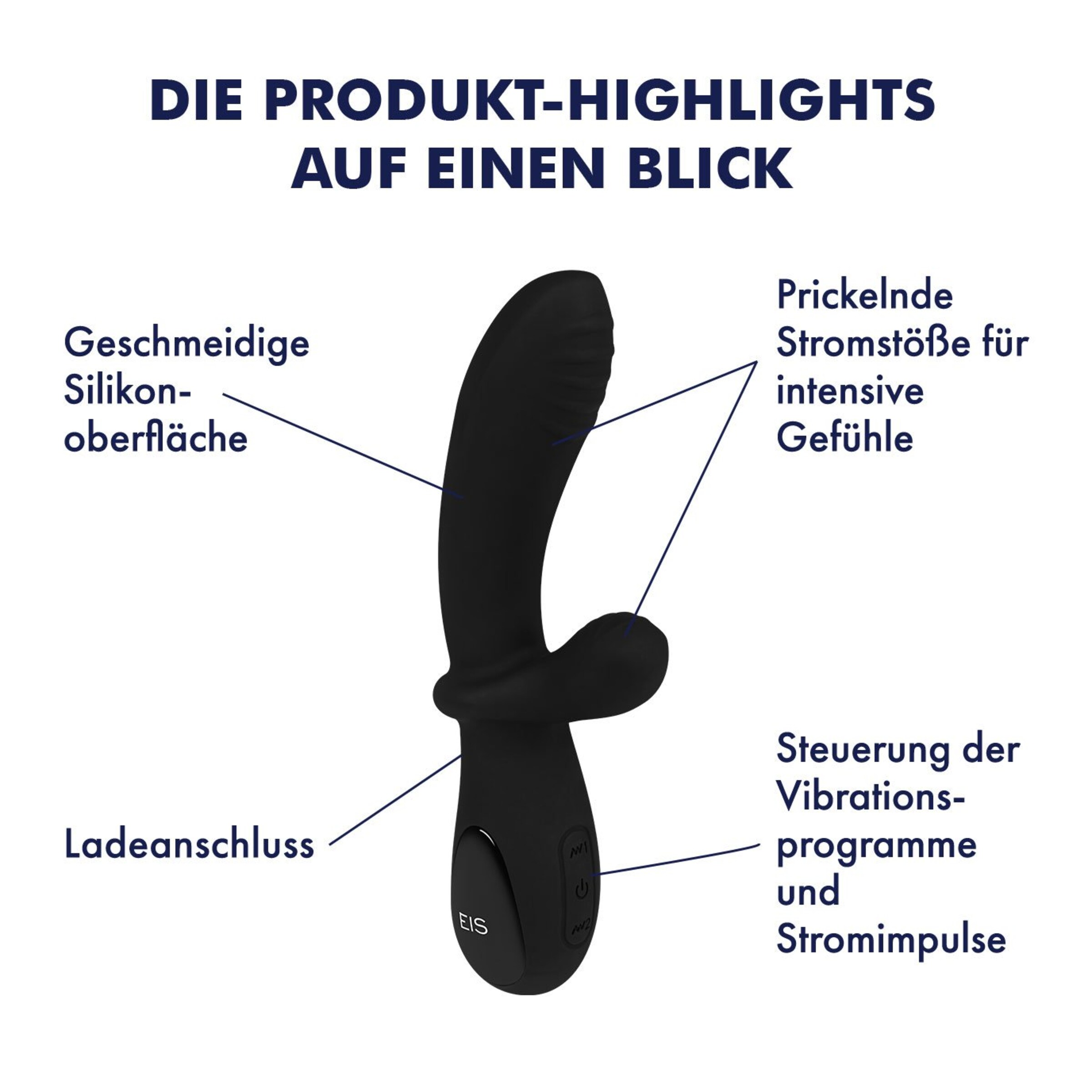 Dieser Rabbit mit Elektro-Stimulation von EIS kombiniert intensive Vibrationen und elektrische Stimulation für ein einzigartiges Erlebnis. Mit einer Gesamtlänge von 19 cm und einer einführbaren Länge von 10,5 cm bietet dieser Rabbitvibrator ein perfektes Zusammenspiel aus präziser G-Punkt-Stimulation und gezielter Klitorisanregung. Die gebogene Spitze sorgt für einen intensiven Kontakt mit Deinem G-Punkt, während der breite, gerippte Klitorisreizer für doppeltes Vergnügen sorgt. Das hautfreundliche Silikon und die gerippte Struktur an Schaft und Reizer bieten Dir ein intensives und gleichzeitig komfortables Gefühl.
