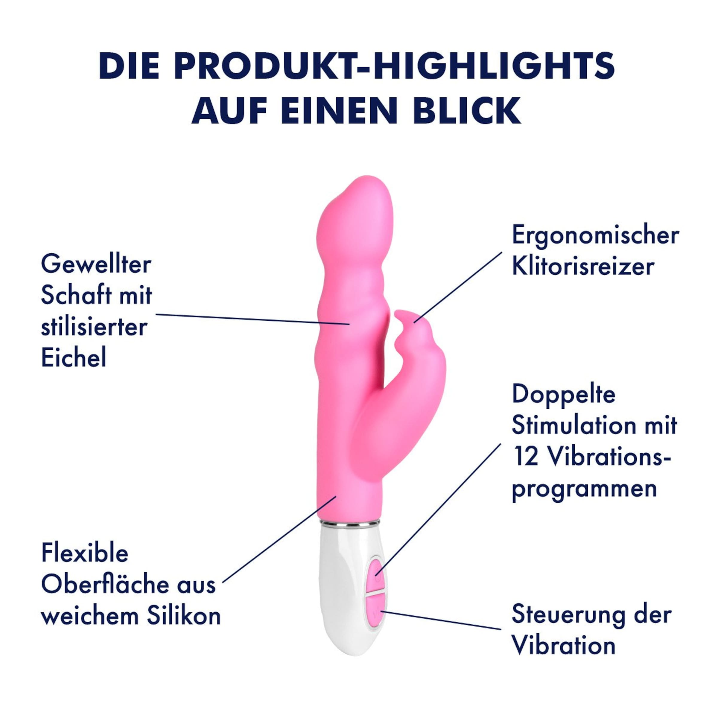 Durch die biegsame und verlockend weiche Beschaffenheit passt sich der Vibrator sehr komfortabel Deinem Körper an und trifft jede Deiner sensiblen Stellen zielgenau. 12 kraftvolle Vibrationsprogramme stimulieren abwechslungsreich und bieten für jede Stimmung den richtigen Rhythmus.