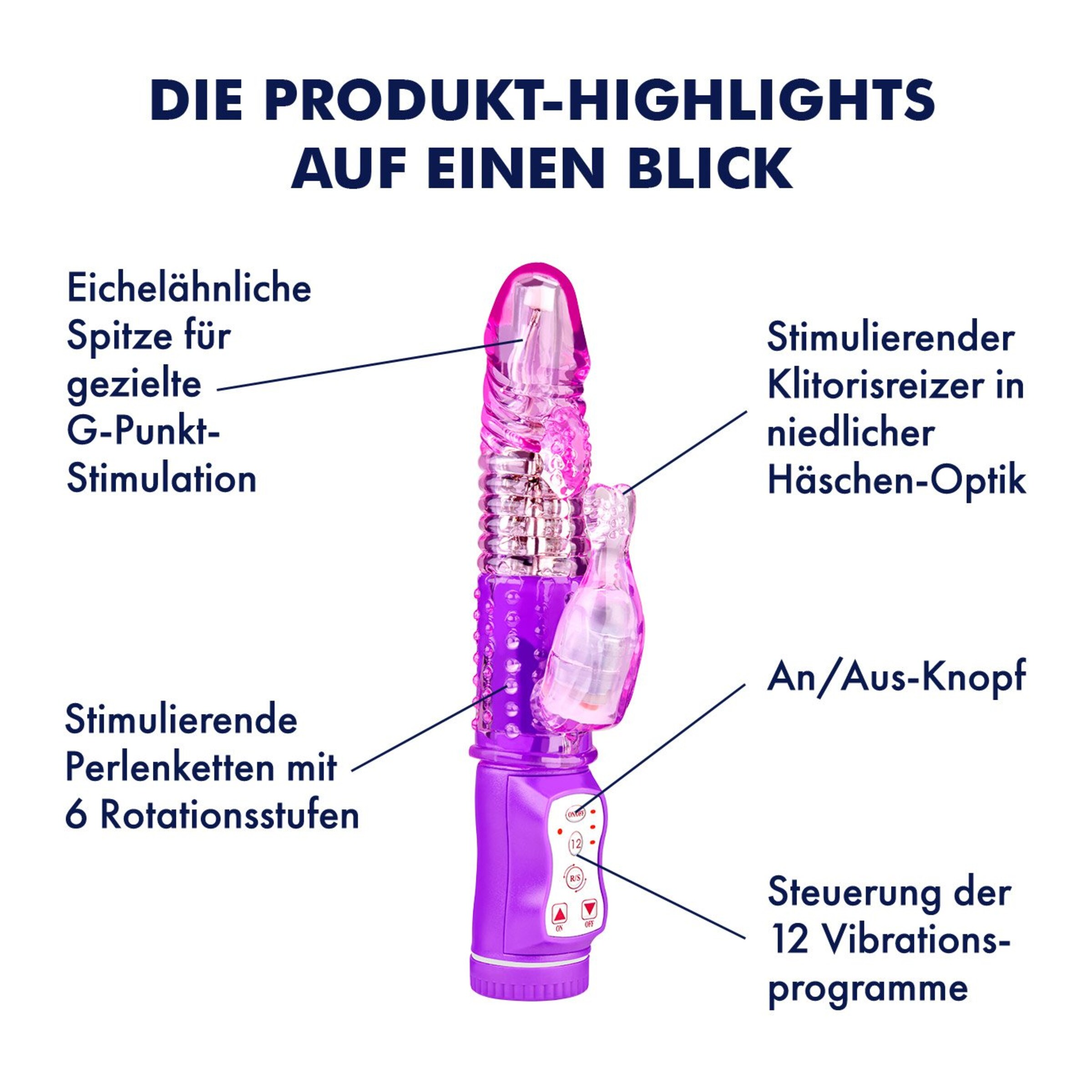 Mit diesem charismatischen Begleiter wird es nie langweilig, denn dieser hübsche Prachtbursche kann alles außer Dir Frühstück ans Bett bringen. Mit einer stilisierten Eichel, einer gerillten Mitte und einer genoppten Basis stimuliert er Dich äußerst vielfältig. Der facettenreiche Lustspender kann aber noch viel mehr! Besonders prickelnde Augenblicke verschaffen Dir die innenliegenden Perlen, die in jede Richtung in drei Geschwindigkeiten rotieren und auch die Spitze in eine stimulierende Kreisbewegung versetzen.