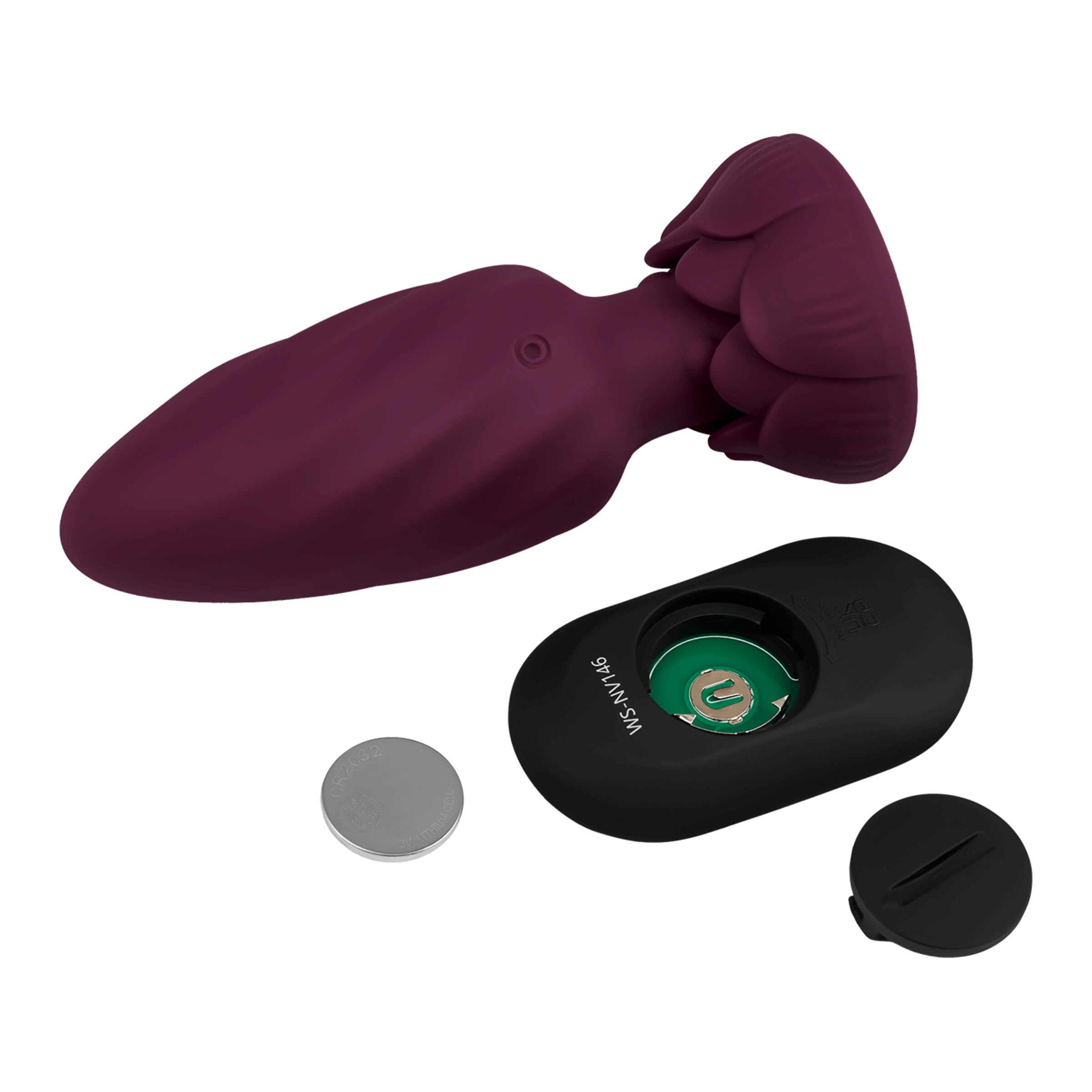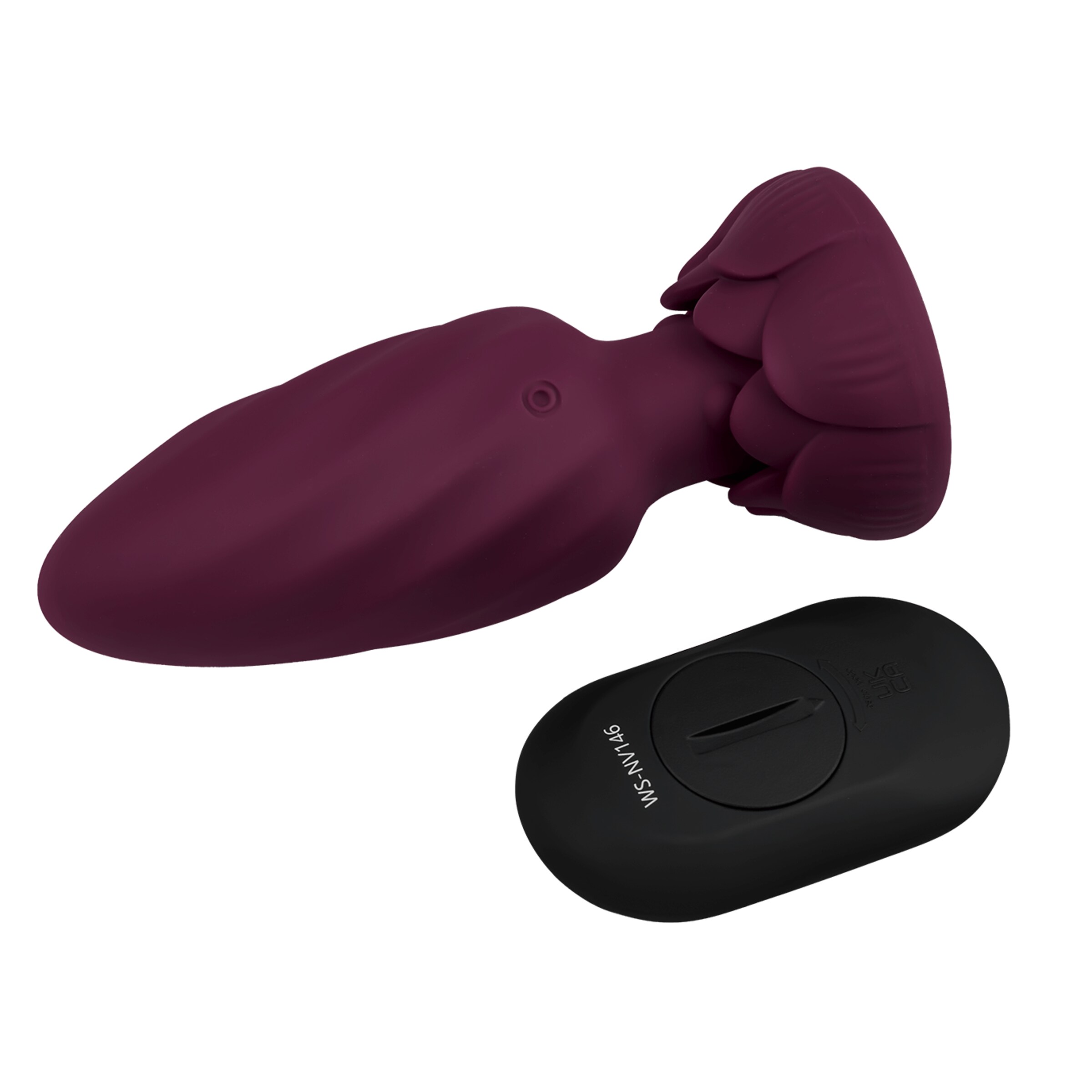 Dieser Analvibrator bringt doppelte Reize an Deinen Hotspot: Mit 9,5 cm einführbarer Länge, 12 cm Gesamtlänge und 4 cm maximalem Durchmesser gleitet der bordeauxrote Plug angenehm ein und trifft dank ergonomischer Form genau ins Schwarze. Die strukturierte Oberfläche sorgt für Extra-Kribbeln, während die breite Blütenbasis sicheren Halt gibt – für tiefen Genuss mit Rundum-Wohlgefühl.