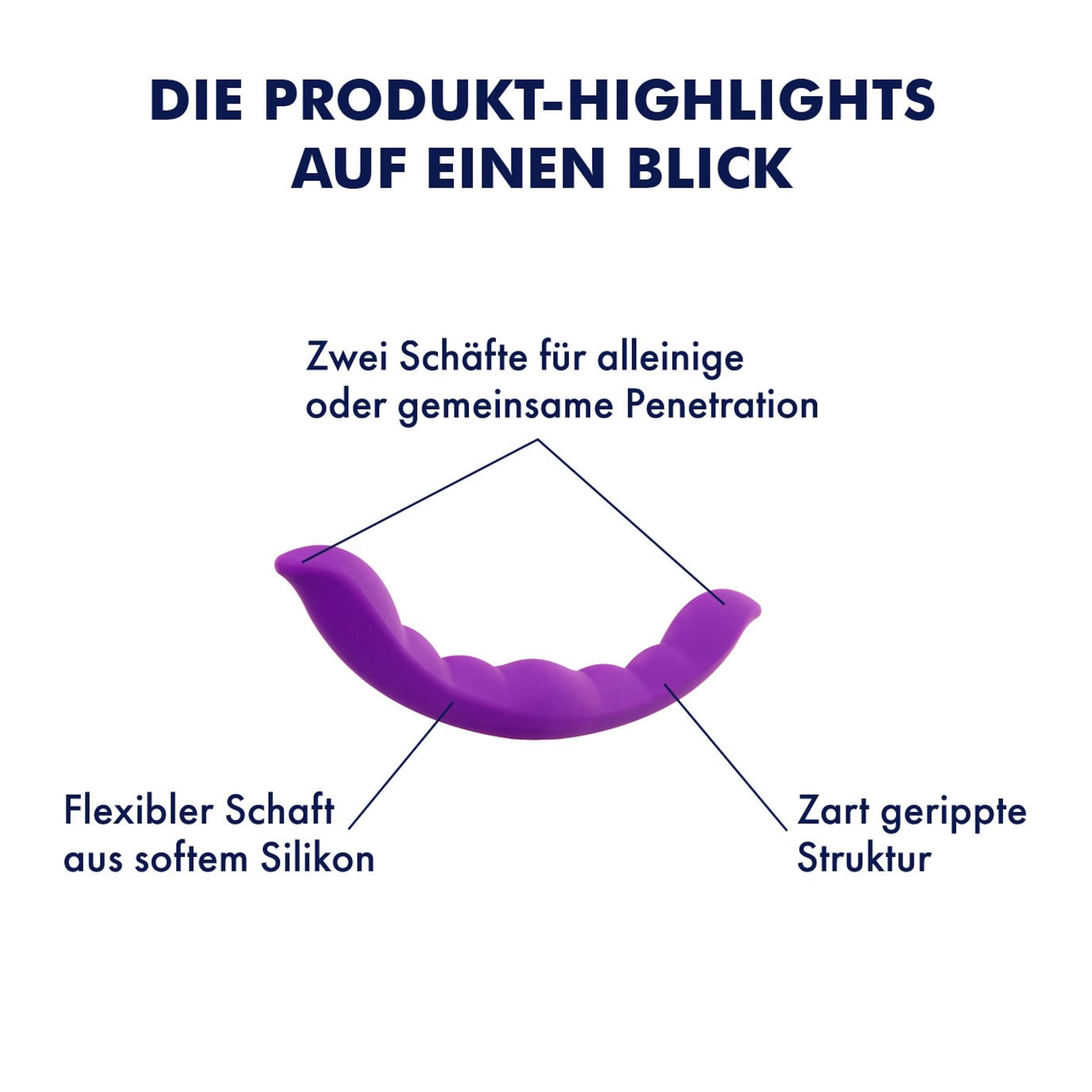 Ab in die Federn mit Euch! Der lilafarbene Doppeldildo mit seiner sanften Rippenstruktur dient Euch als ideales Spielzeug für einen Abend in kuscheliger Zweisamkeit. Die zwei ergonomisch geschwungenen Enden dieses sanften Verführers sind ideal gebogen, um garantiert Eure Sweet Spots zu treffen und Euch sinnlich zu stimulieren.Der Schaft ist zart strukturiert und massiert bei jeder Bewegung. Durch seine biegsame und sehr gleitfreudige Beschaffenheit ist der Dildo ein atemberaubender Freudenspender, der hält, was er verspricht. Er erzählt auch garantiert nicht weiter, welche Liebesbekundungen Ihr zwischen den Kissen austauscht. Versprochen.