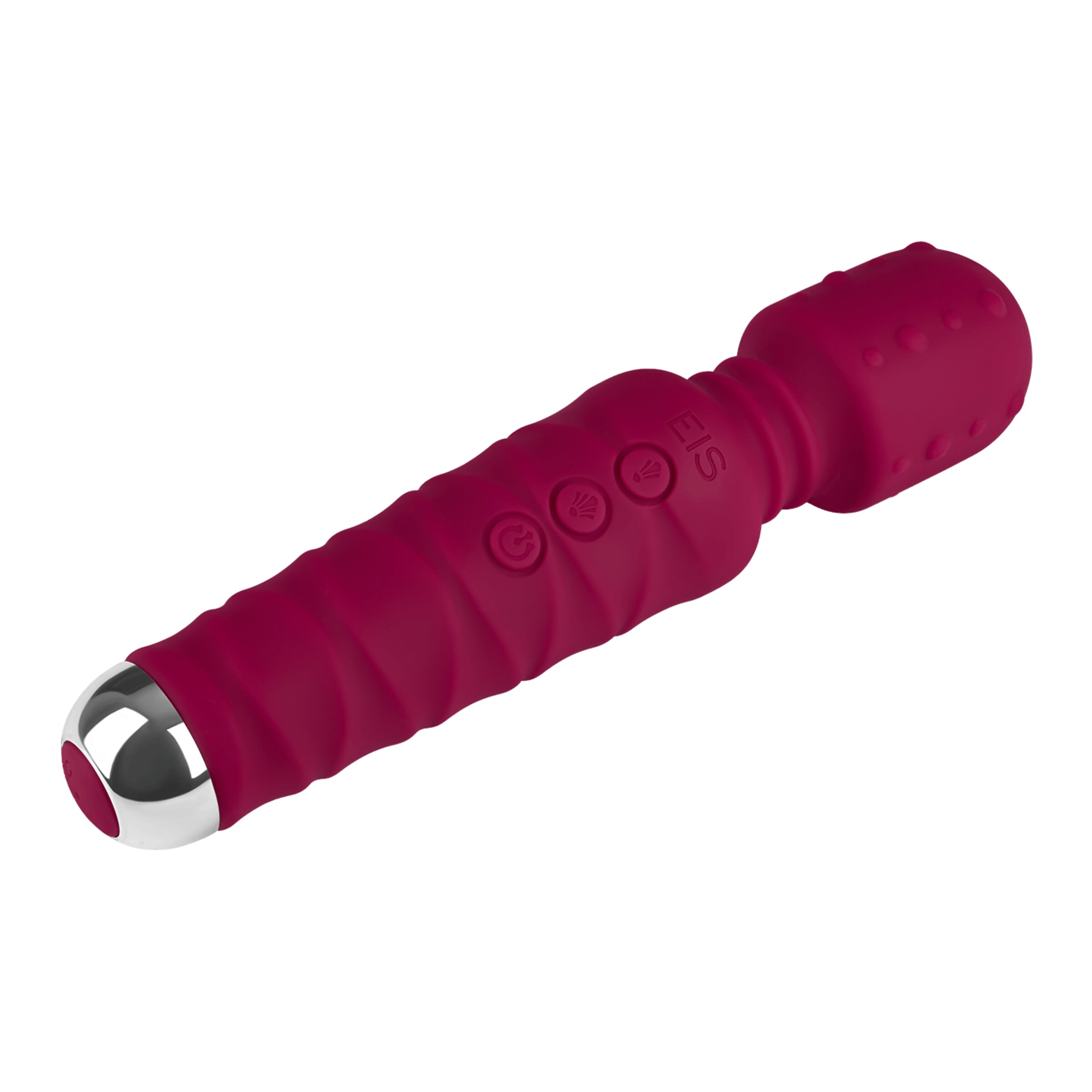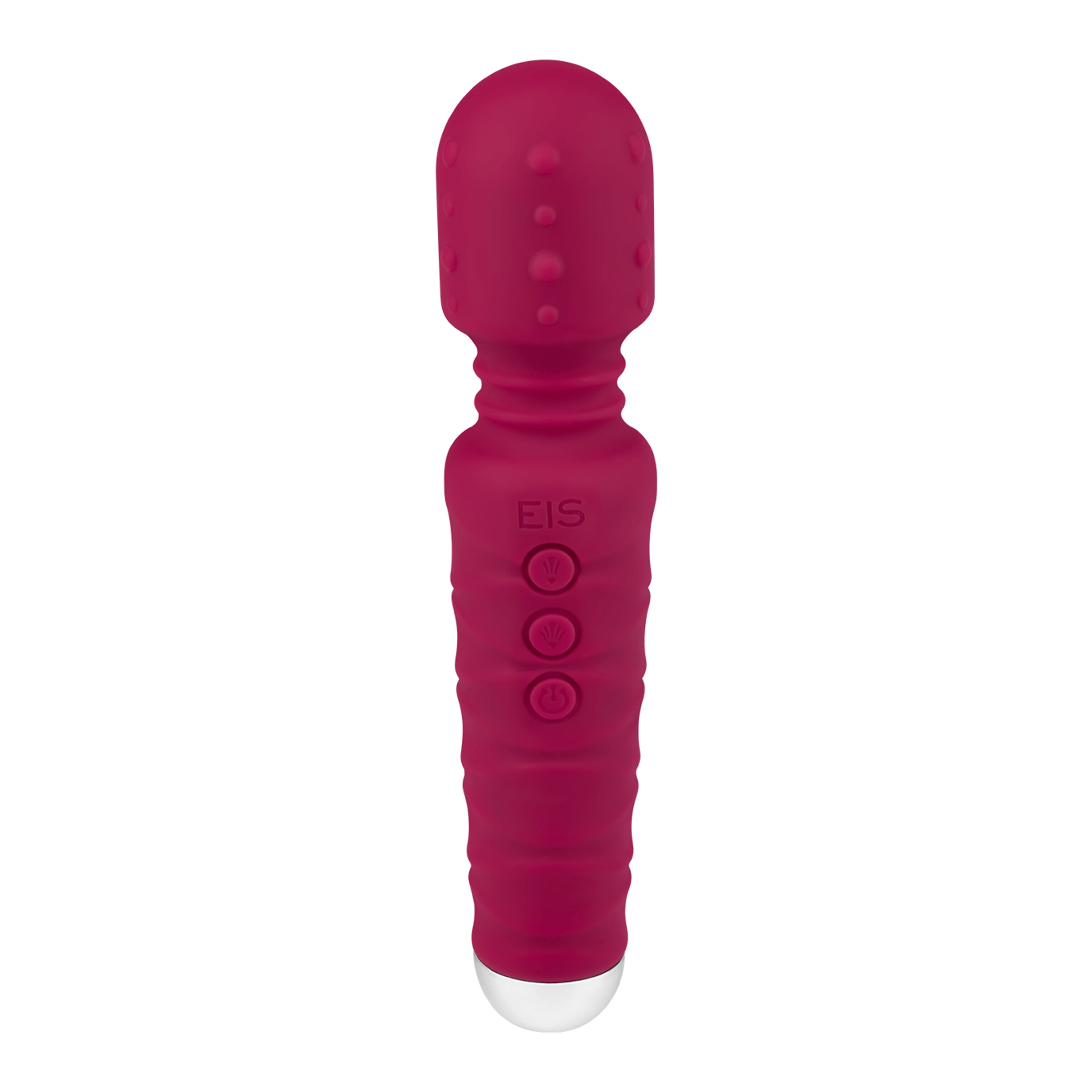 Der strukturierte Massager aus Silikon von EIS ist dein vielseitiger Begleiter für intensive Entspannungs- und Lustmomente. Der flexible Massagekopf mit genoppter Struktur passt sich sanft deinen Konturen an und sorgt für gezielte Reize – perfekt für anregende Ganzkörpermassagen oder fokussierte klitorale Stimulation. Das seidenmatte Finish fühlt sich dabei besonders angenehm auf der Haut an und verleiht dem Massager eine edle Optik.