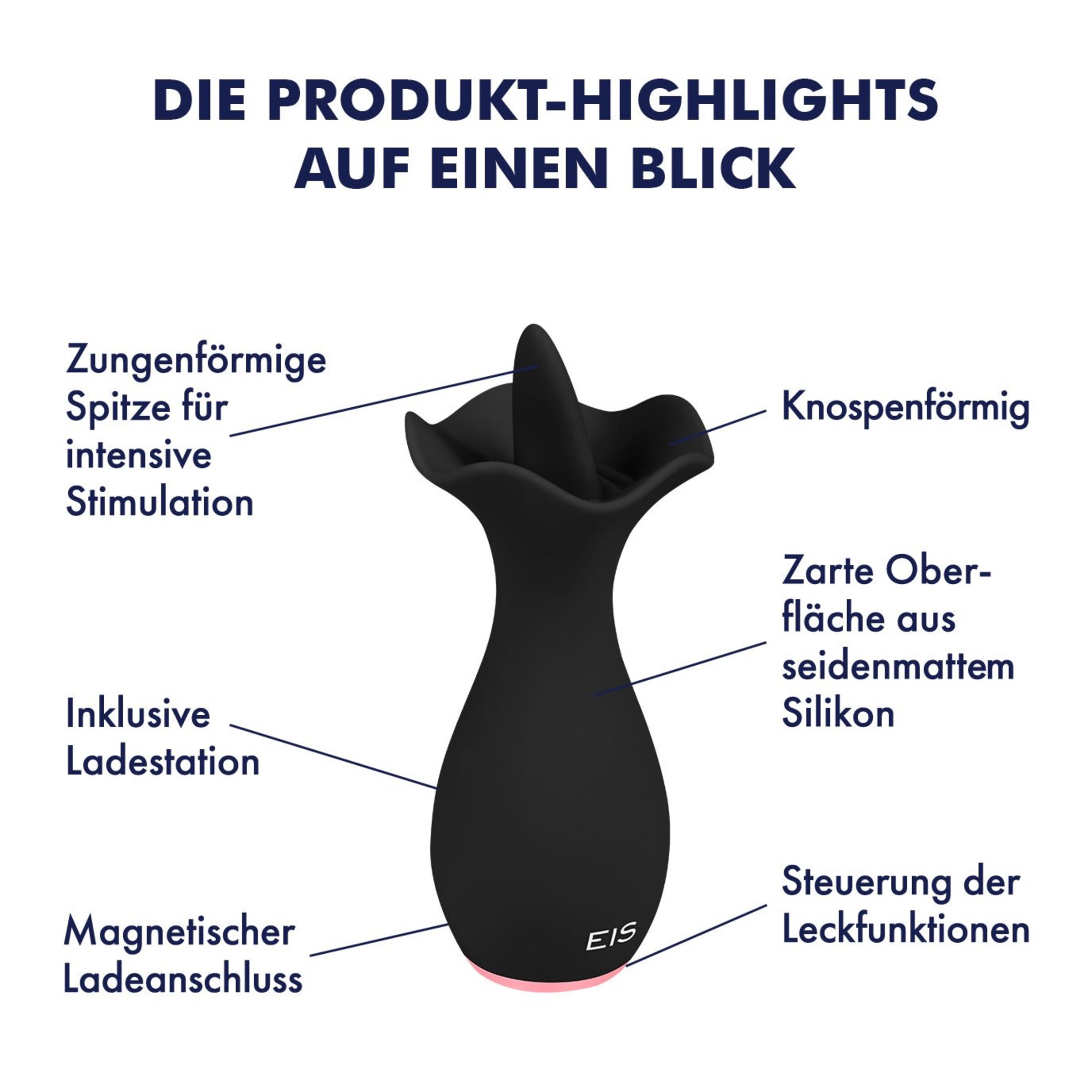 Erlebe mit dem Süßen Auflegevibrator in Blütendesign eine sinnliche Stimulation, die Deine intimsten Wünsche erfüllen wird. Mit einer Länge von 11,7 cm und einer zungenförmigen Spitze bietet er eine gezielte klitorale Stimulation, die Dir Lustmomente der Extraklasse schenkt. Tauche ein in eine Welt voller prickelnder Empfindungen und entdecke die Vielfalt von 10 aufregenden Vibrationsprogrammen, die die Zunge zum Tanzen bringen.