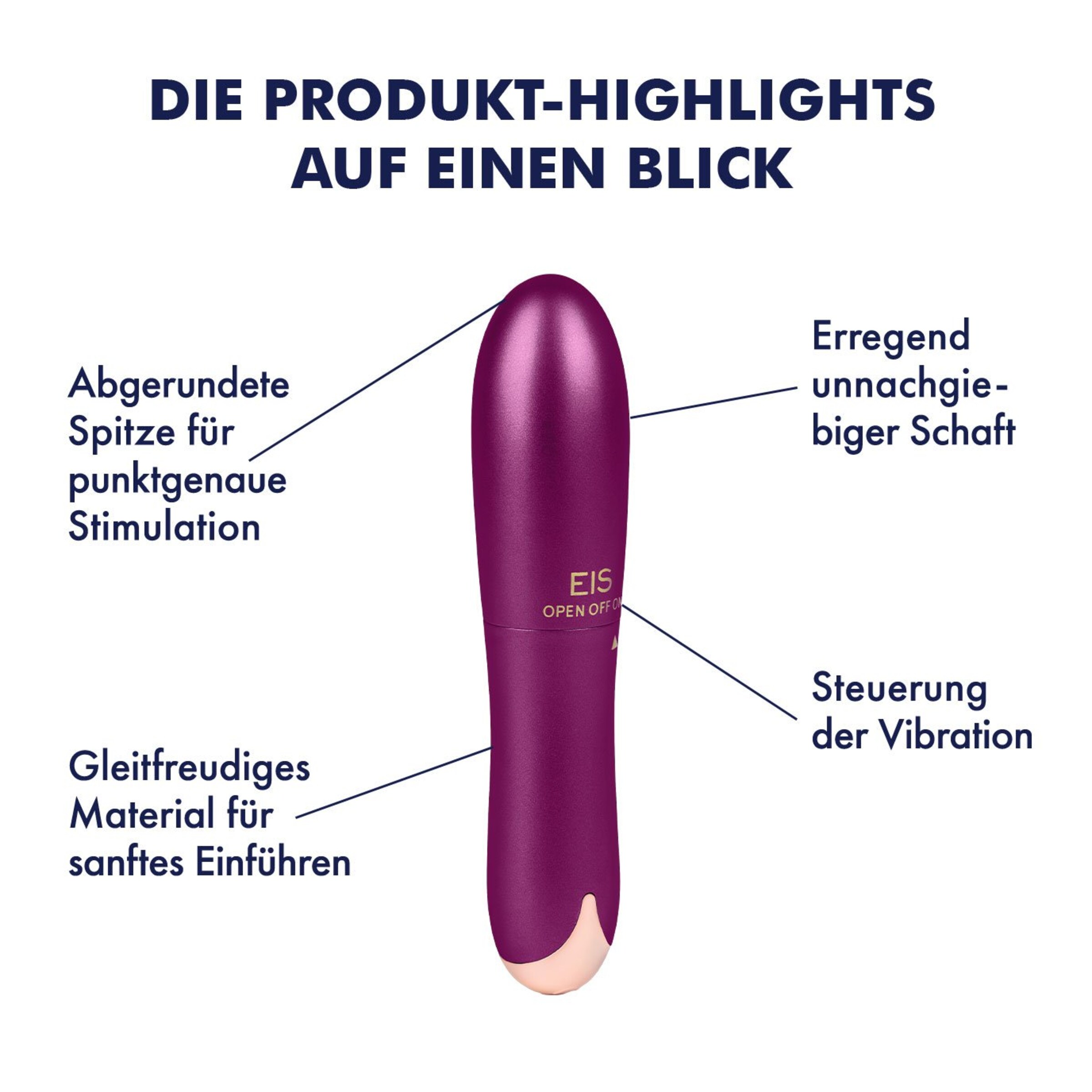 Lass Dich von der verführerischen Kombination aus glänzendem Metallic-Look und intensiver Vibration in eine Welt voller sinnlicher Genüsse entführen. Der Vibrator von EIS ist mit einer Gesamtlänge von 15 cm und einem Durchmesser von 3,3 cm perfekt dimensioniert, um Dich zielsicher in ekstatische Höhen zu führen. Das hochwertige ABS Kunststoff-Material sorgt für eine gleitende und geschmeidige Berührung auf Deiner Haut, während die kraftvolle Vibration Dich zu unvergesslichen Momenten der Lust begleitet.