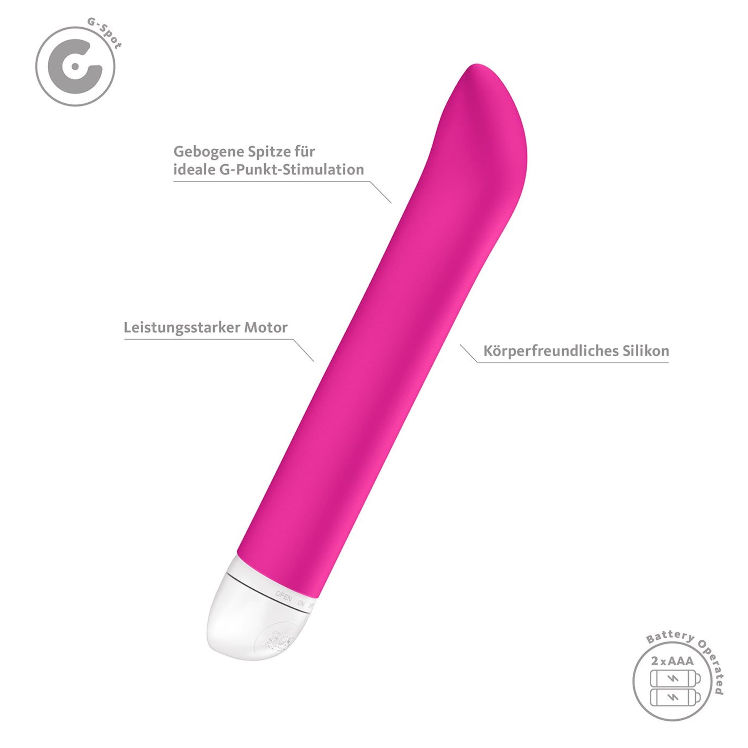 JOUPIE ist der Beweis, dass Größe überschätzt wird. Dieser schlanke G-Punkt-Vibrator setzt nicht auf Spielereien, sondern auf einen klaren Plan: einschalten, treffen, überzeugen!