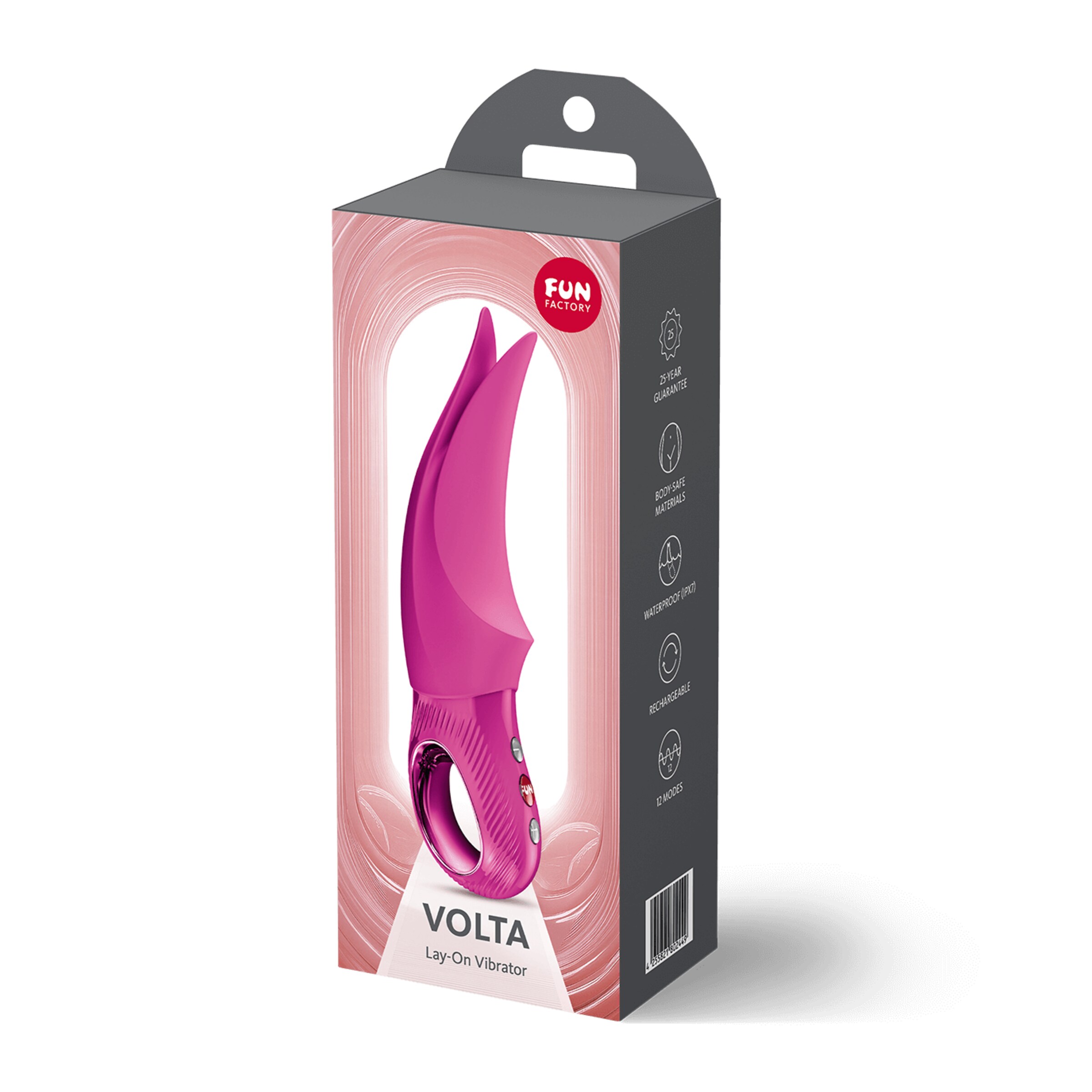 Der Volta sieht einfach schon super aus, aber er kann auch was. Durch die geschwungene Form lässt er sich schön wie ein gewöhnlicher Auflegevibrator nutzen. Das Besondere sind allerdings die flatternden Spitzen mit denen sich alle möglichen erogenen Zonen kitzeln lassen. Das ist ein ungewöhnliches Gefühl und es bedurfte ein paar Experimente um die Lieblingskombi zu finden, aber das Ergebnis sind explosive Höhepunkte. Wer etwas Neues ausprobieren möchte, findet ein interessantes und vielseitiges Spielzeug, das für alle Geschlechter solo oder mit Partner eine Bereicherung sein kann. Die Verarbeitung ist wie von FunFactory gewohnt gut. Das Material ist angenehm weich, allerdings empfehle ich Gleitgel, da sonst die Reibung zu hoch sein kann. Die Schlaufe ermöglicht einen guten Halt. Die Knöpfe sind leicht bedienbar. Doch ich weiß nicht, ob ich es hilfreich oder seltsam finde, dass sie leuchten. Die Tastensperre ist sinnvoll, aber ich muss mir das Booklet dazu legen, damit ich nicht ver