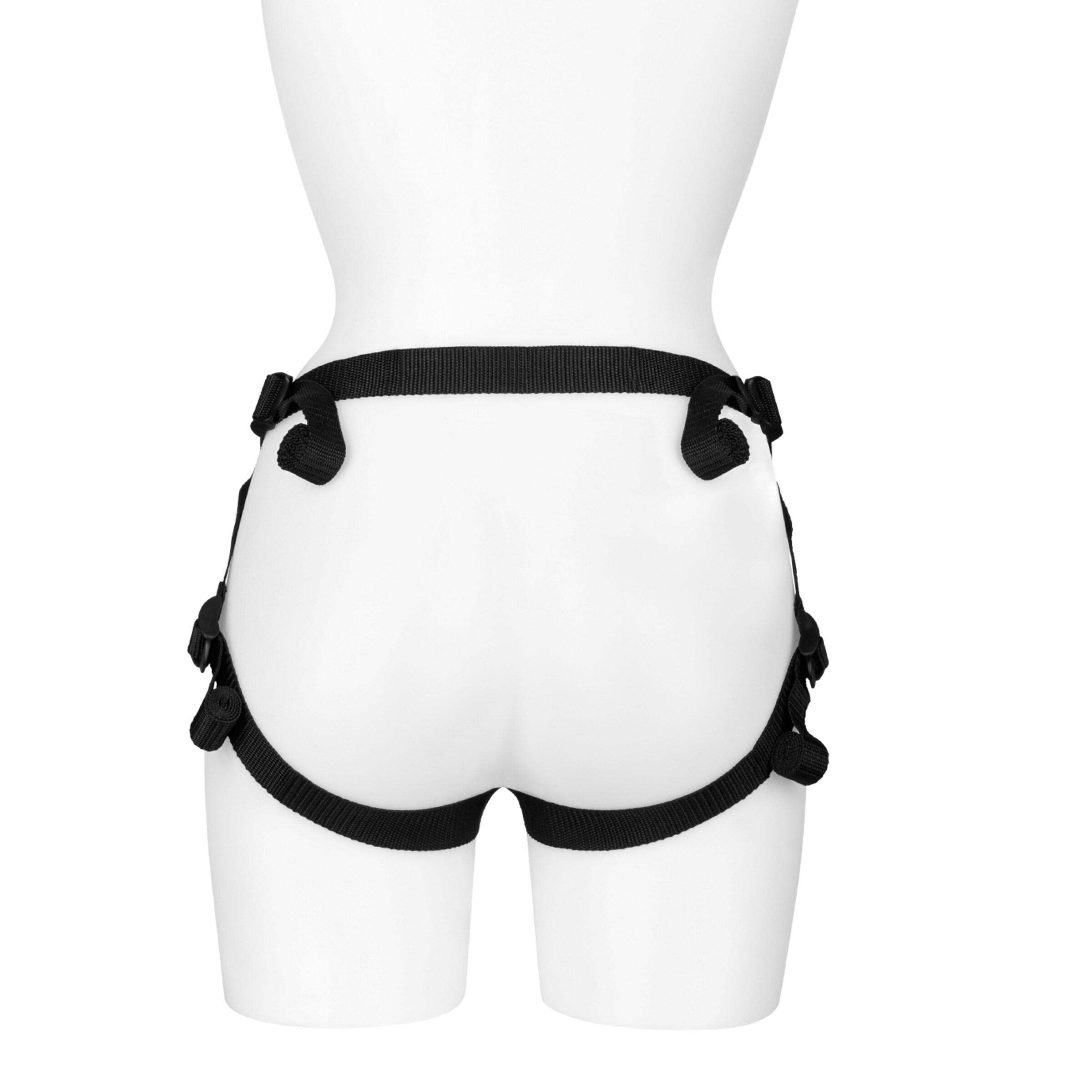Die Gurte können mit praktischen Schiebeschnallen individuell eingestellt werden, sodass Dir ein idealer Sitz ermöglicht wird. Das Strap-On Geschirr ist bis zu einem Hüftumfang von ca. 150 cm geeignet.