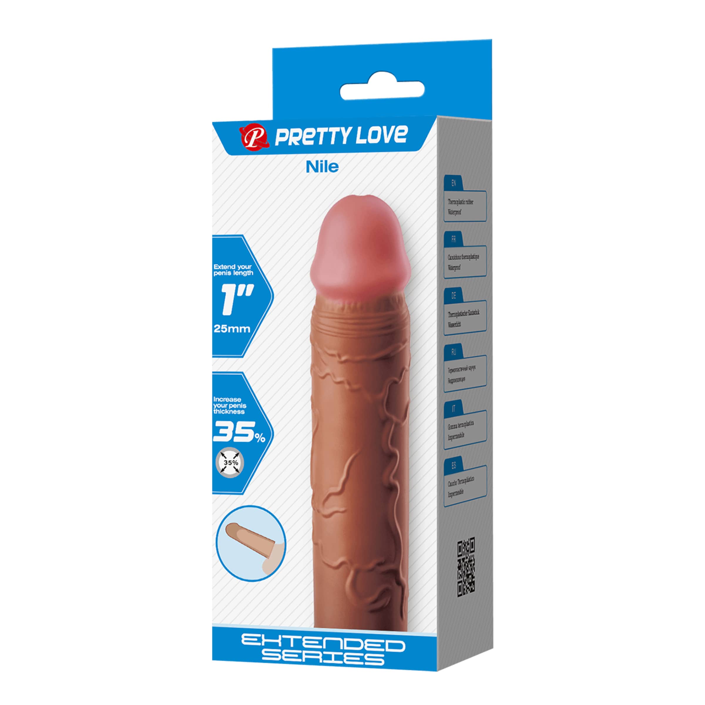 Mit der Nile Penishülle von Pretty Love bringst Du Deine Lust auf die nächste Stufe – für Dich und Deinen Partnerin! Die Hülle verleiht Deinem besten Stück satte 2,5 cm zusätzliche Länge und sorgt mit einer 35 %igen Umfangssteigerung für ein intensives Ausfüllgefühl. Der naturgetreu geformte Schaft mit authentischer Oberfläche fühlt sich dank realistischem TPE besonders hautnah an. Mit einer einführbaren Länge von 16,5 cm und einem Durchmesser von 3,8 cm bietet Nile maximales Vergnügen in natürlicher Optik.