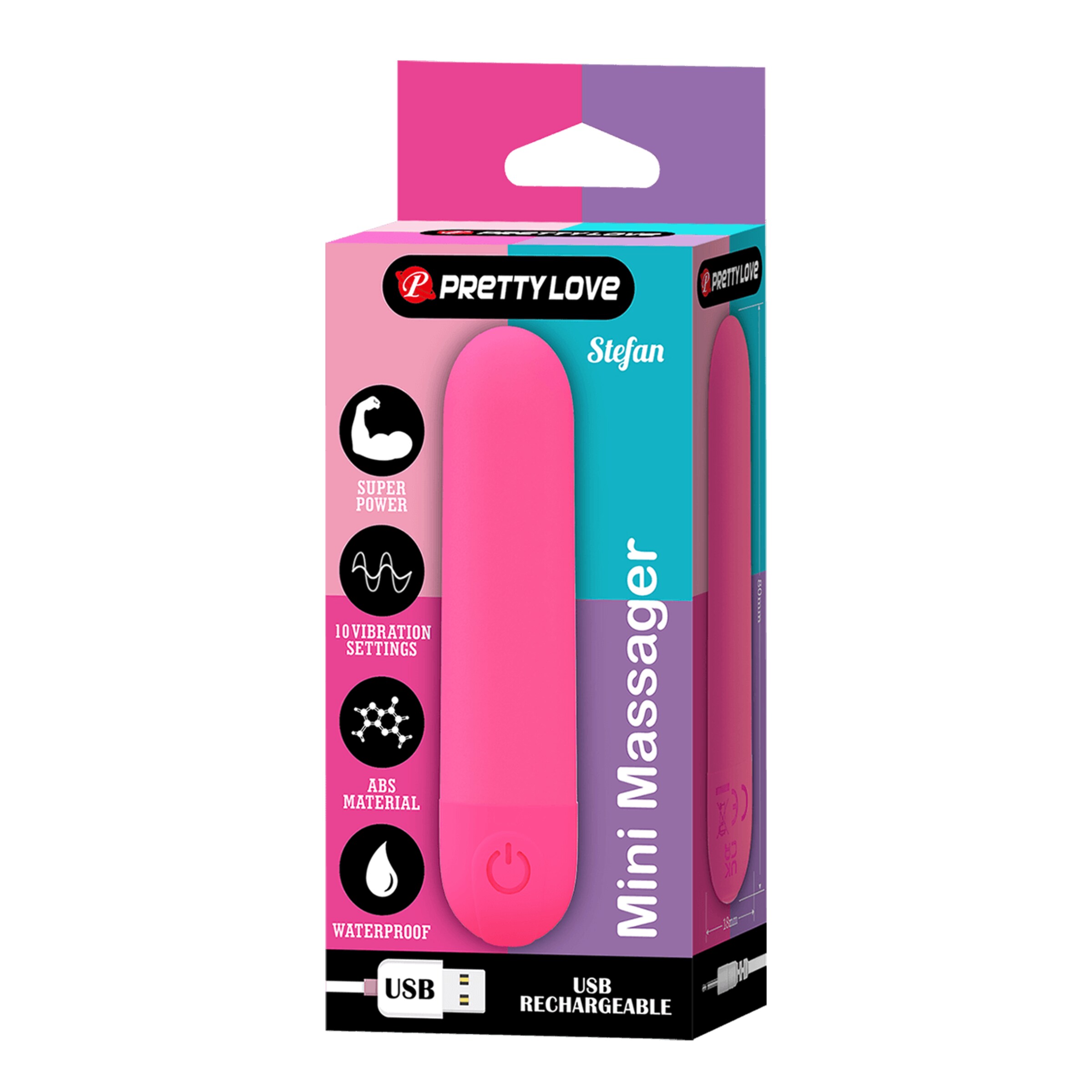 Der Stefan Mini-Massager von Pretty Love mag mit seinen 8 cm Länge und nur 1,8 cm Durchmesser auf den ersten Blick zierlich wirken – doch in seinem kompakten Körper steckt geballte Vibration! Mit 10 verschiedenen Vibrationsmodi bringt er Abwechslung an Deine empfindsamsten Stellen: Ob punktuell an der Klitoris, an Brustwarzen oder zur zarten Massage im Inneren – dieser kleine Bullet kann’s überall. Seine dezente Größe macht ihn zum idealen Begleiter für spontane Lustmomente – auch unterwegs!