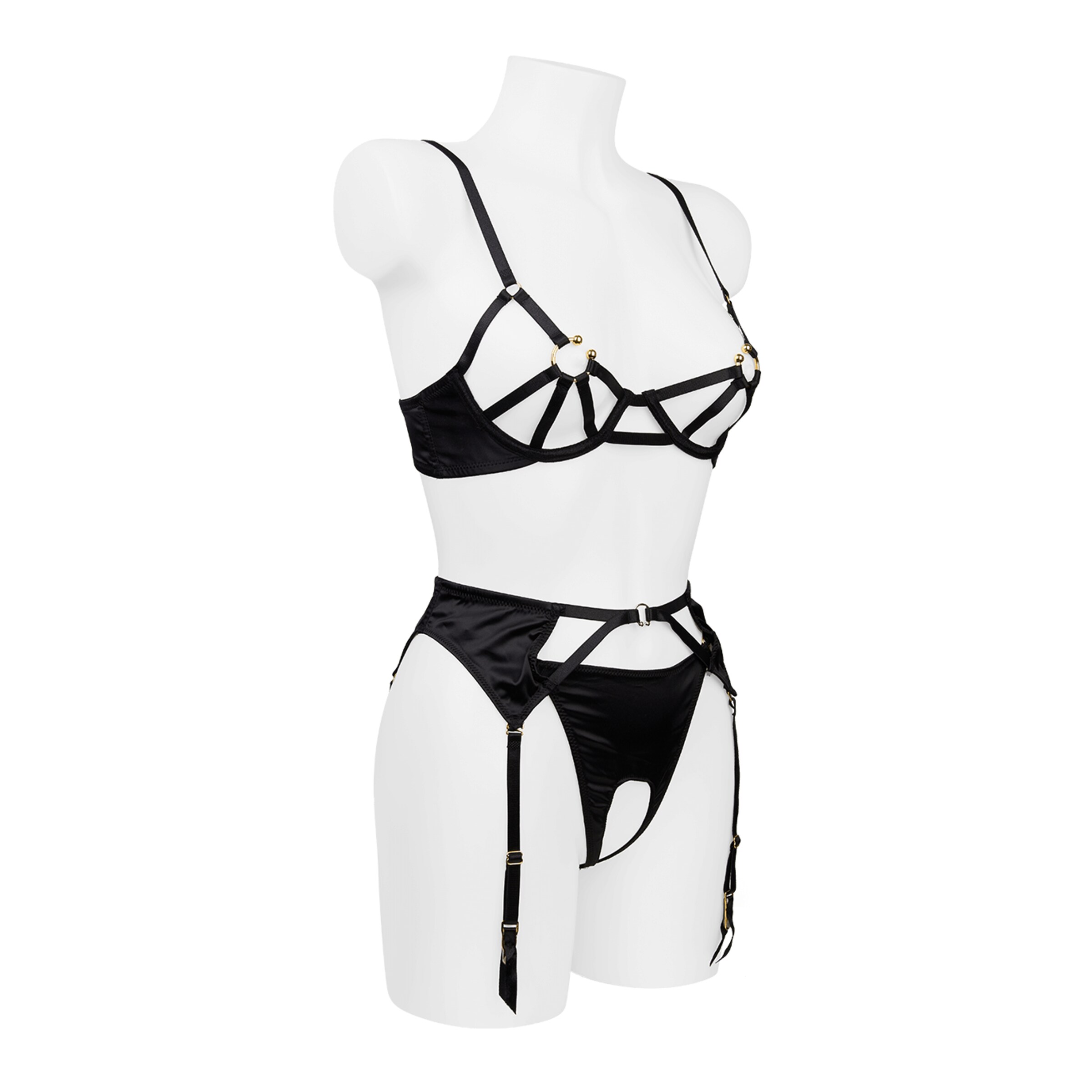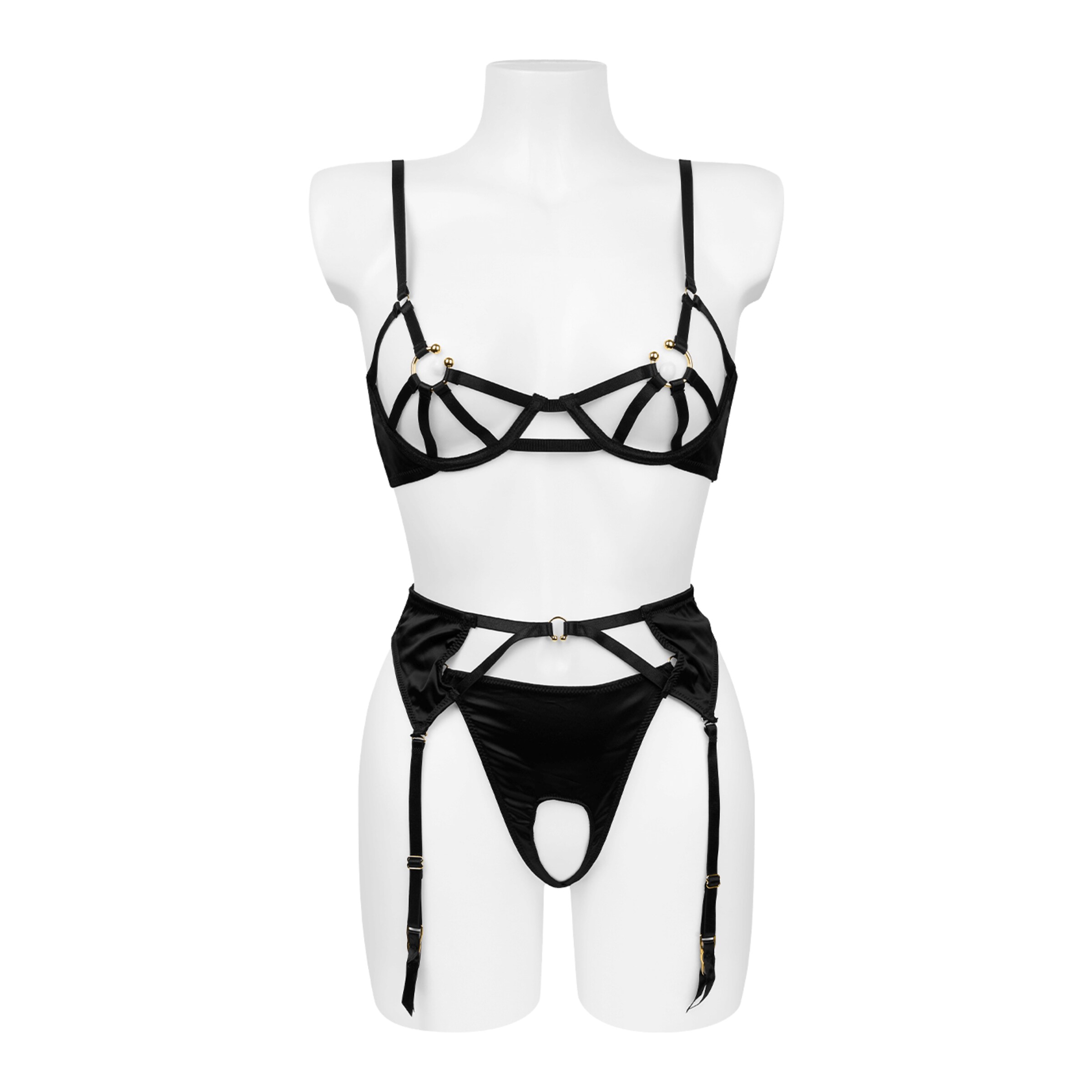 Das raffinierte Design des Sets kombiniert reizvolle Cut-outs mit durchdachten Details, die für verführerische Einblicke sorgen. Der Garter-Belt betont Deine Taille und lässt sich ideal mit Deinen Lieblingsstrümpfen kombinieren, während der offene String für ein extra heißes Finish sorgt. Jedes Element dieses Sets wurde geschaffen, um Dein Selbstbewusstsein und Deine sinnliche Seite zu unterstreichen.