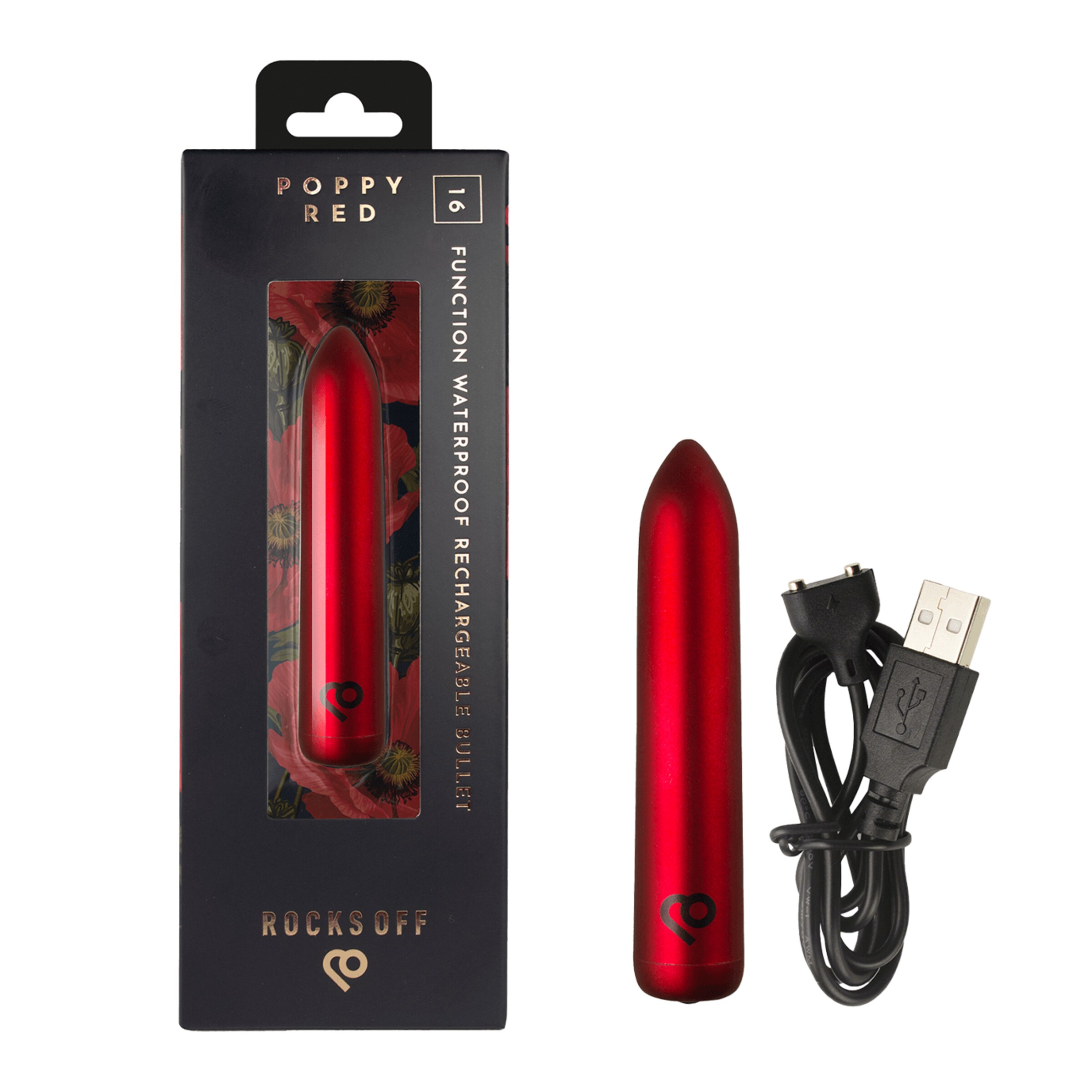 Der Poppy Red Bullet von Rocks-Off vereint Eleganz, Diskretion und intensive Vibration in einem stilvollen Design. Mit seiner auffälligen roten Optik und kompakten Größe ist dieser Minivibrator der perfekte Begleiter für sinnliche Momente – zuhause oder unterwegs. Trotz seines handlichen Formats überzeugt er mit beeindruckender Leistung.