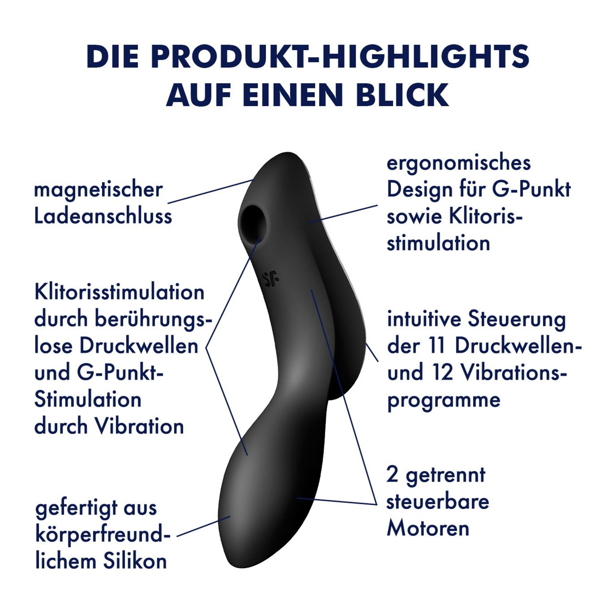 Gehörst Du auch zu den Menschen, die alles auf einmal wollen? Dann ist der Satisfyer Curvy Trinity 2 mit seinen drei Motoren genau das richtige Toy für Dich! Mit Vibrationen und Air Pulse Technologie kann er Dich als Auflege-, G-Punkt- oder Druckwellenvibrator verwöhnen.