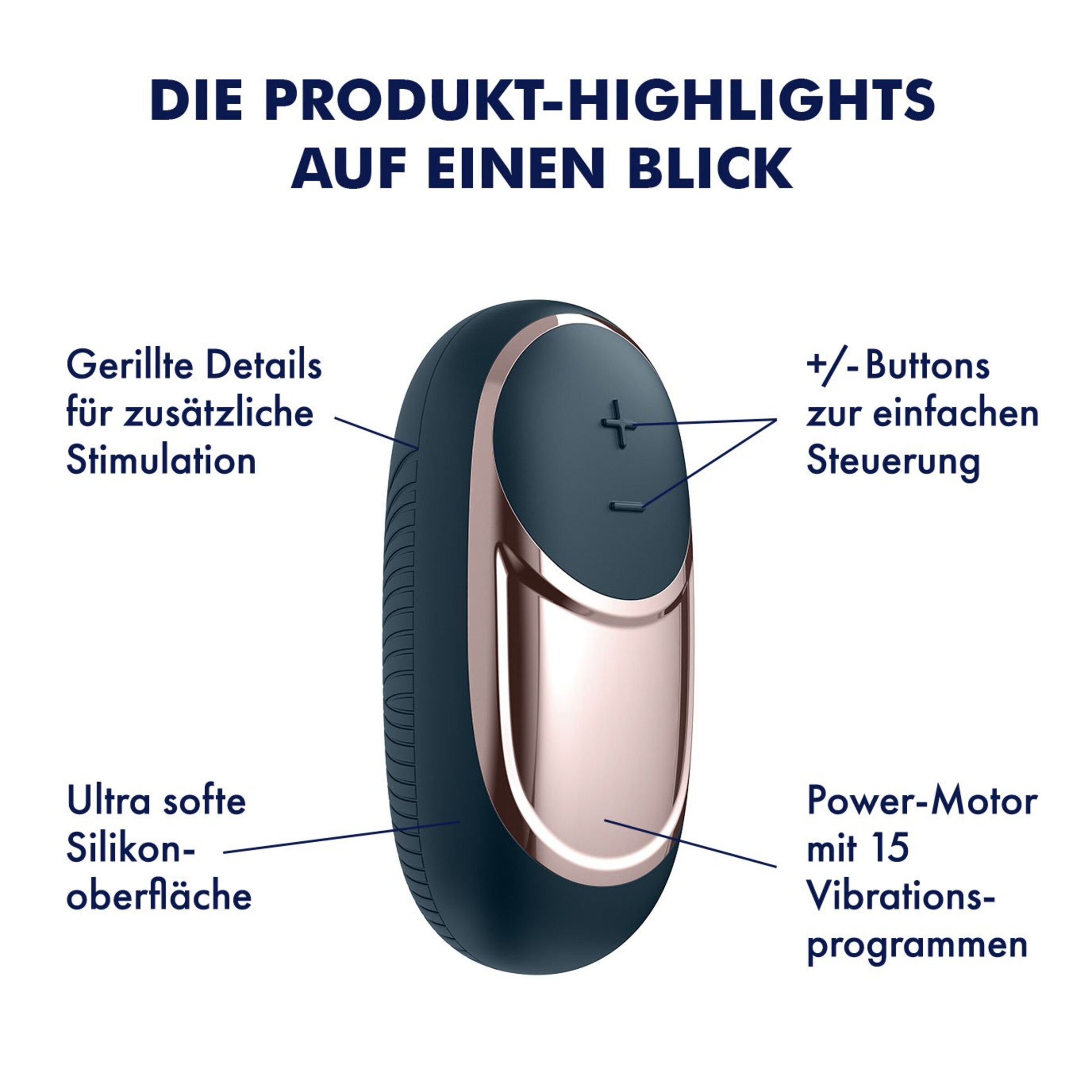 Satisfyer - viel mehr als eine deutsche Marke! Alles begann mit der berührungslosen Stimulation der Klitoris dank innovativer und patentierter Druckwellentechnologie - mittlerweile bereichert die weltweit führende Sexual Wellness Marke das Liebesleben von weit über 25.000.000 Millionen Frauen, Männern und Paaren in über 100 Ländern mit einem vielfältigen Produktsortiment sowie stets neuen Ideen und modernsten Technologien. Mit Qualitätsmerkmalen wie hochwertigem Silikon, 15 Jahren Garantie, wasserdichter (IPX7) Verarbeitung und leistungsstarken Motoren ist die deutsche Erfolgsmarke stets darauf bedacht, in ihren Produkten Technologie mit außergewöhnlichem Design zu verbinden. Alleine in den letzten Jahren hat es Satisfyer wie keine andere Firma geschafft über 474 internationale Design-Awards zu gewinnen. Darunter gleich 73x den Red Dot und 19x den IF Design Award.
