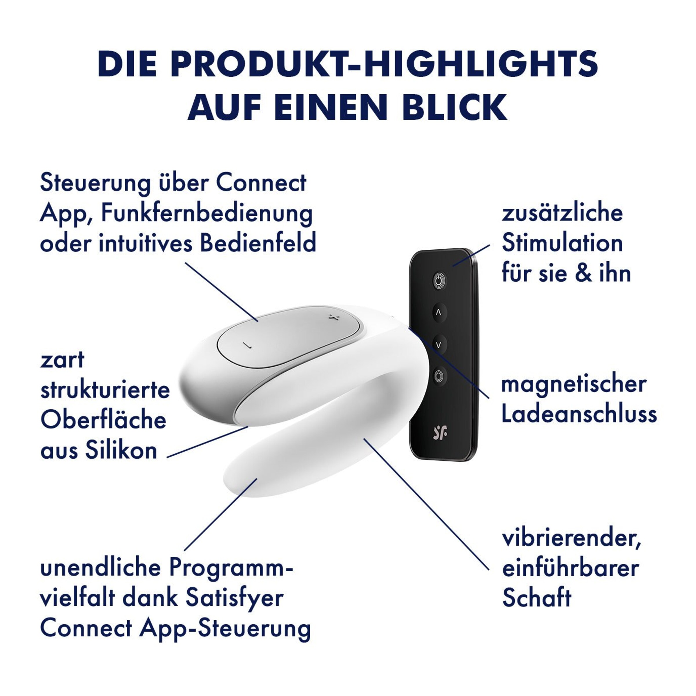 Werde Teil der R-Love-ution und lade Dir die kostenlose Satisfyer Connect App auf Dein Smartphone! Erlebe lustvolle Abenteuer: Fernsteuerung und exklusive Funktionen, wie haptische Programmierung, unendliche, individuell einstellbare Vibrationsprogramme, Bewegungserkennung oder sogar die Interaktion mehrerer, verbundener Toys - probiere es aus und freue Dich jeden Monat auf neue tolle Funktionen! Lade dazu ganz einfach die kostenlose App für Android oder Apple iOs herunter und app geht's!