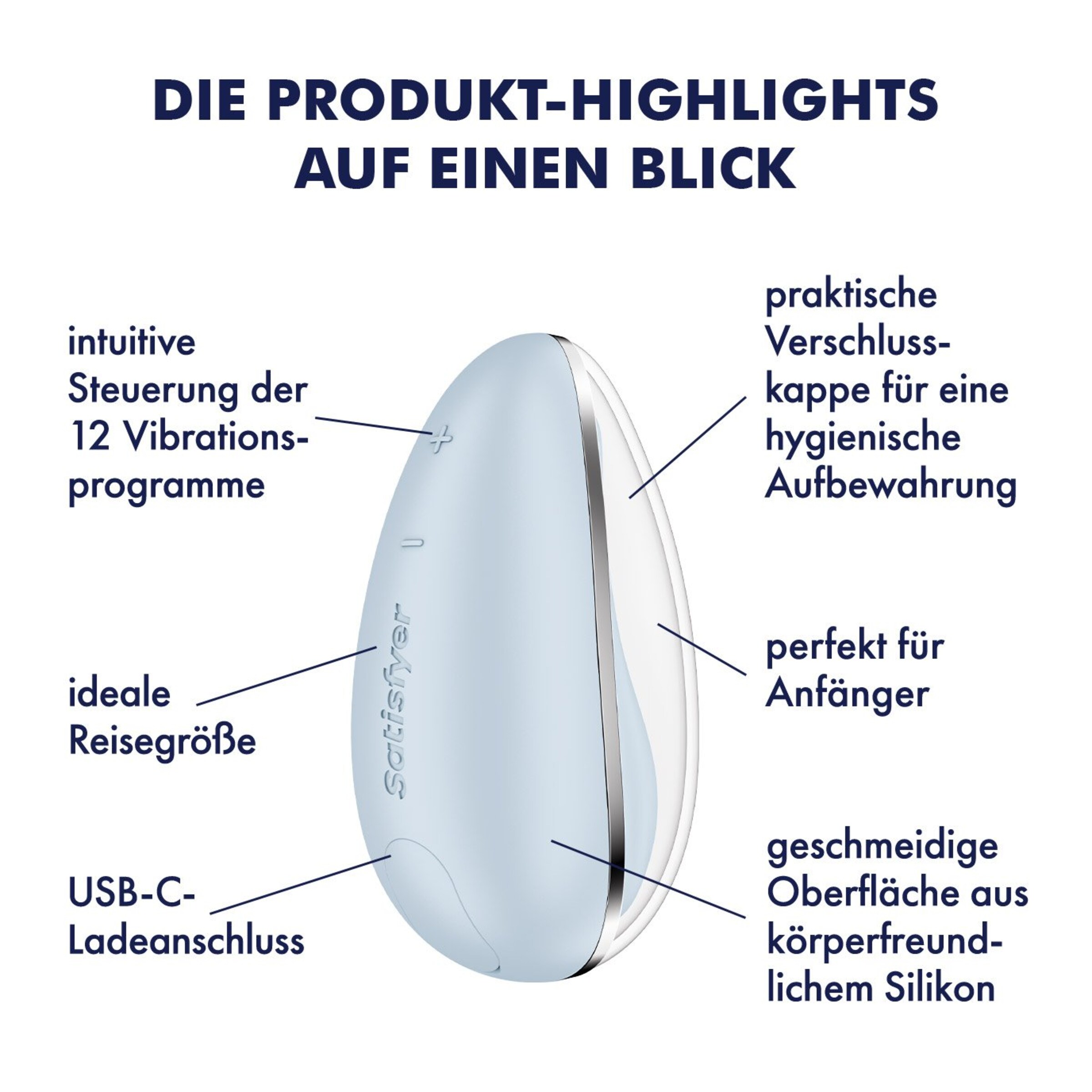 Satisfyer - viel mehr als eine deutsche Marke! Alles begann mit der berührungslosen Stimulation der Klitoris dank innovativer und patentierter Druckwellentechnologie - mittlerweile bereichert die weltweit führende Sexual Wellness Marke das Liebesleben von weit über 25.000.000 Millionen Frauen, Männern und Paaren in über 100 Ländern mit einem vielfältigen Produktsortiment sowie stets neuen Ideen und modernsten Technologien. Mit Qualitätsmerkmalen wie hochwertigem Silikon, 15 Jahren Garantie, wasserdichter Verarbeitung und leistungsstarken Motoren ist die deutsche Erfolgsmarke stets darauf bedacht, in ihren Produkten Technologie mit außergewöhnlichem Design zu verbinden. Alleine in den letzten Jahren hat es Satisfyer wie keine andere Firma geschafft über 474 internationale Design-Awards zu gewinnen. Darunter gleich 73x den Red Dot und 19x den IF Design Award.