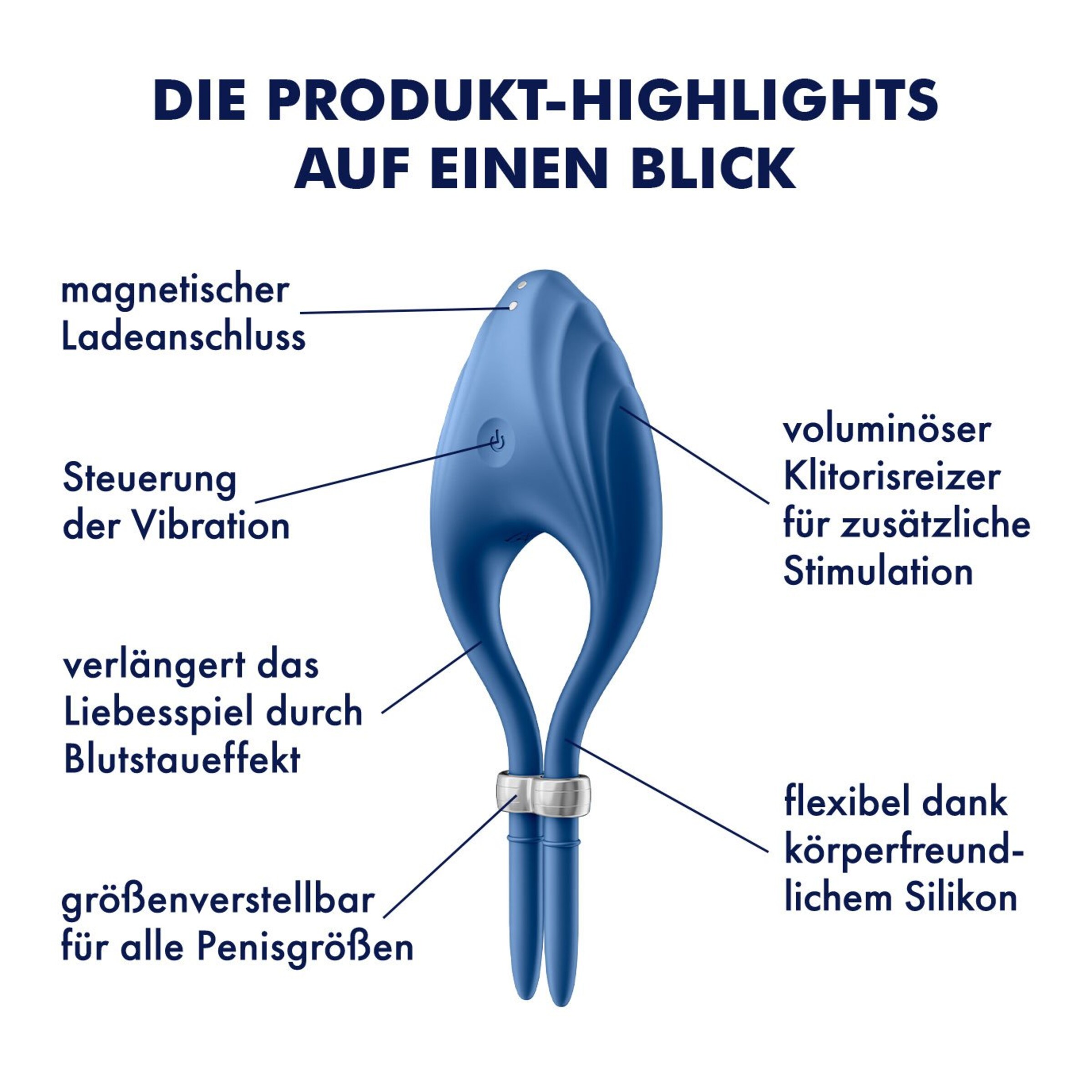 Mit der Oberfläche aus körperfreundlichem Silikon ist der Satisfyer Duelist besonders hygienisch und sanft zur Haut. Auch optisch weiß der Penisring zu beeindrucken: Die elegante Optik sowie der metallisch glänzende Schieber runden das edle Design ab. Und da nach dem Spiel vor dem Spiel ist, lassen sich die integrierten Akkus des Penisrings mit dem beiliegenden USB-Ladekabel wiederaufladen.