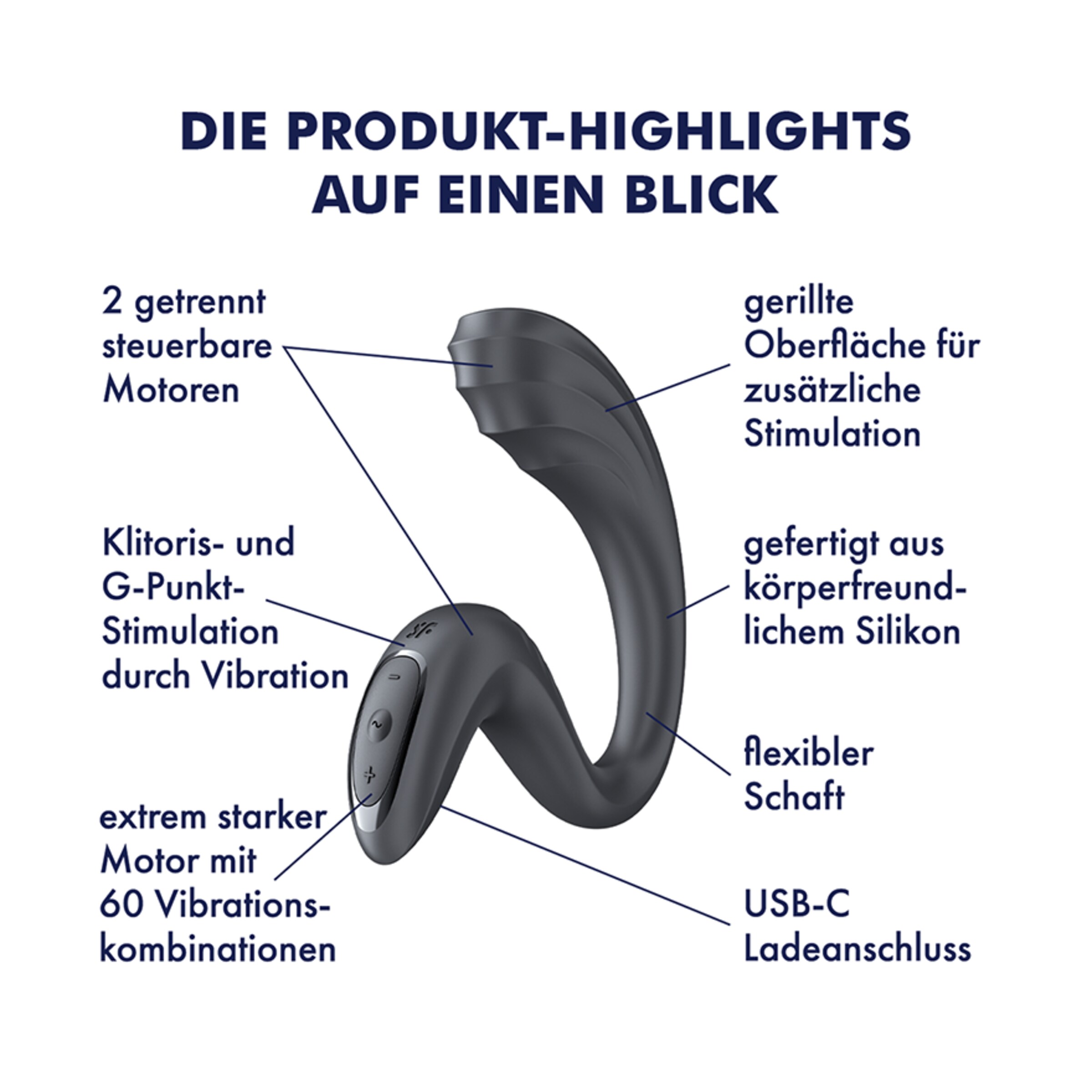 Satisfyer – viel mehr als eine deutsche Marke! Alles begann mit der berührungslosen Stimulation der Klitoris dank innovativer und patentierter Druckwellentechnologie – mittlerweile bereichert die weltweit führende Sexual Wellness Marke das Liebesleben von weit über 25.000.000 Millionen Frauen, Männern und Paaren in über 100 Ländern mit einem vielfältigen Produktsortiment sowie stets neuen Ideen und modernsten Technologien. Mit Qualitätsmerkmalen wie hochwertigem Silikon, 15 Jahren Garantie, wasserdichter Verarbeitung und leistungsstarken Motoren ist die deutsche Erfolgsmarke stets darauf bedacht, in ihren Produkten Technologie mit außergewöhnlichem Design zu verbinden. Alleine in den letzten Jahren hat es Satisfyer wie keine andere Firma geschafft über 474 internationale Design-Awards zu gewinnen. Darunter gleich 73x den Red Dot und 19x den IF Design Award.