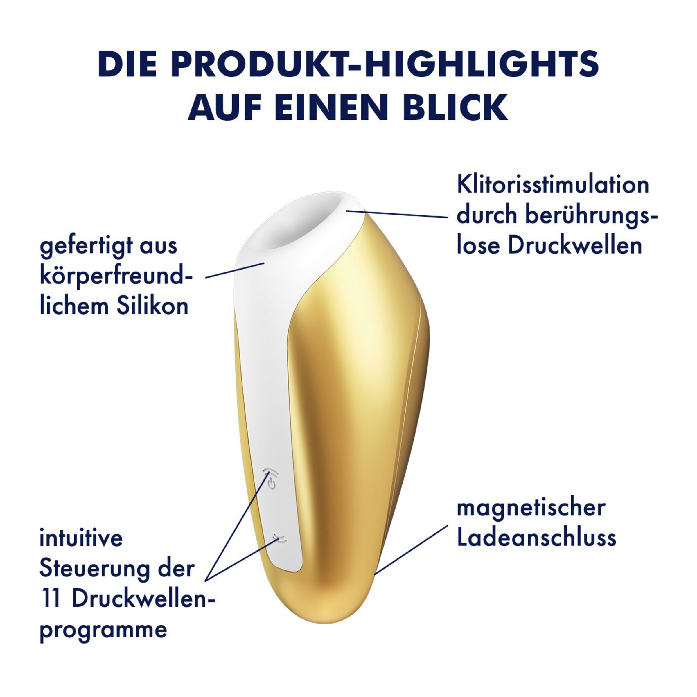 Satisfyer - viel mehr als eine deutsche Marke! Alles begann mit der berührungslosen Stimulation der Klitoris dank innovativer und patentierter Druckwellentechnologie - mittlerweile bereichert die weltweit führende Sexual Wellness Marke das Liebesleben von weit über 25.000.000 Millionen Frauen, Männern und Paaren in über 100 Ländern mit einem vielfältigen Produktsortiment sowie stets neuen Ideen und modernsten Technologien. Mit Qualitätsmerkmalen wie hochwertigem Silikon, 15 Jahren Garantie, wasserdichter (IPX7) Verarbeitung und leistungsstarken Motoren ist die deutsche Erfolgsmarke stets darauf bedacht, in ihren Produkten Technologie mit außergewöhnlichem Design zu verbinden. Alleine in den letzten Jahren hat es Satisfyer wie keine andere Firma geschafft über 474 internationale Design-Awards zu gewinnen. Darunter gleich 73x den Red Dot und 19x den IF Design Award.
