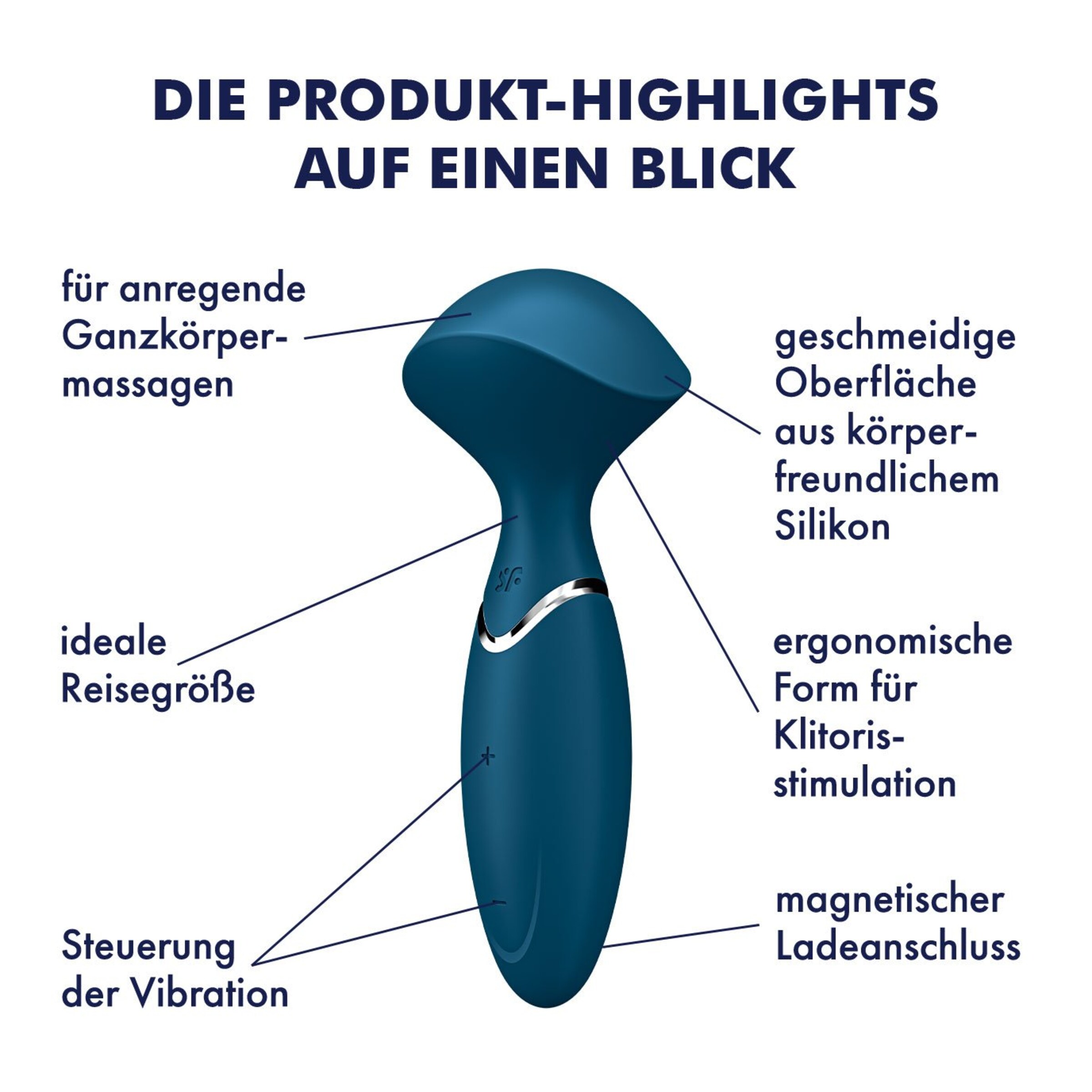 Er ist klein und kompakt - und trotzt nur so vor lauter Power! Mit kraftvollen Vibrationen und einem flexiblen Köpfchen kümmert sich der Satisfyer Mini Wand-er um Deine verspannten Körperstellen und erogenen Zonen. Und das am liebsten unterwegs: Mit seiner Größe von 16 cm nimmt er im Reisegepäck kaum Platz ein und lässt sich einfach transportieren, damit Du auch auf Reisen auf nichts verzichten musst.