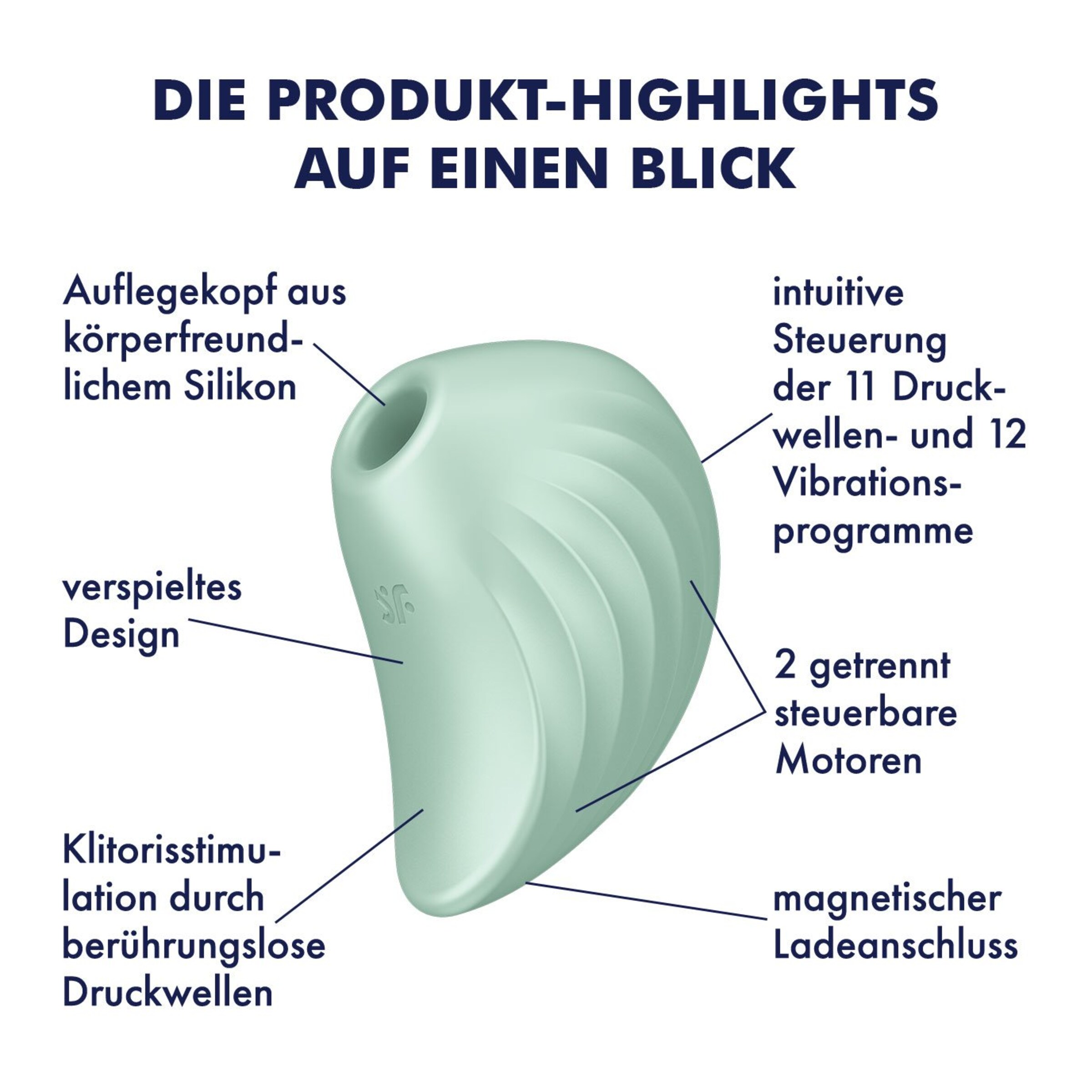 Eine Perle für Deine Perle! Der Satisfyer Pearl Diver lässt Dich auf intensiven Druckwellen schwimmen und Dich in eine Welt der Lust eintauchen. Das verspielte, muschelförmige Design strahlt in verspielter Optik und bereitet Dir nicht nur aufregende Solo-Abenteuer, sondern ist auch ziemlich süß anzusehen. Dieser Druckwellenvibrator aus körperfreundlichem Silikon stimuliert Deine Klitoris genauso, wie Du es magst und ist dabei besonders sanft zur Haut. Dank des kompakten Designs kannst Du den Satisfyer Pearl Diver zudem auch einfach transportieren und auf Reisen oder unterwegs mitnehmen - er ist stets zur Stelle, um Deine Bedürfnisse zu befriedigen!