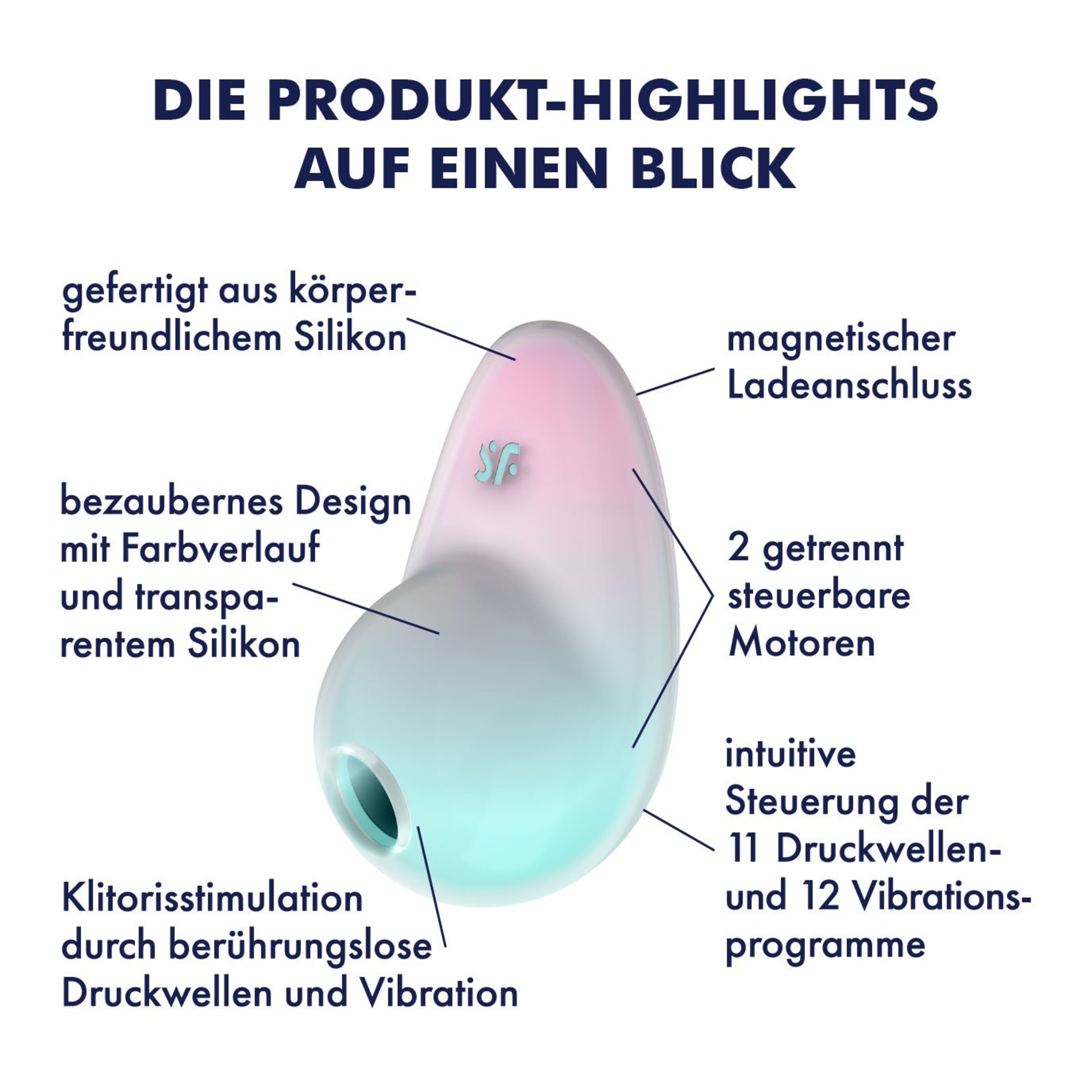 Satisfyer - viel mehr als eine deutsche Marke! Alles begann mit der berührungslosen Stimulation der Klitoris dank innovativer und patentierter Druckwellentechnologie - mittlerweile bereichert die weltweit führende Sexual Wellness Marke das Liebesleben von weit über 25.000.000 Millionen Frauen, Männern und Paaren in über 100 Ländern mit einem vielfältigen Produktsortiment sowie stets neuen Ideen und modernsten Technologien. Mit Qualitätsmerkmalen wie hochwertigem Silikon, 15 Jahren Garantie, wasserdichter Verarbeitung und leistungsstarken Motoren ist die deutsche Erfolgsmarke stets darauf bedacht, in ihren Produkten Technologie mit außergewöhnlichem Design zu verbinden. Alleine in den letzten Jahren hat es Satisfyer wie keine andere Firma geschafft über 474 internationale Design-Awards zu gewinnen. Darunter gleich 73x den Red Dot und 19x den IF Design Award.
