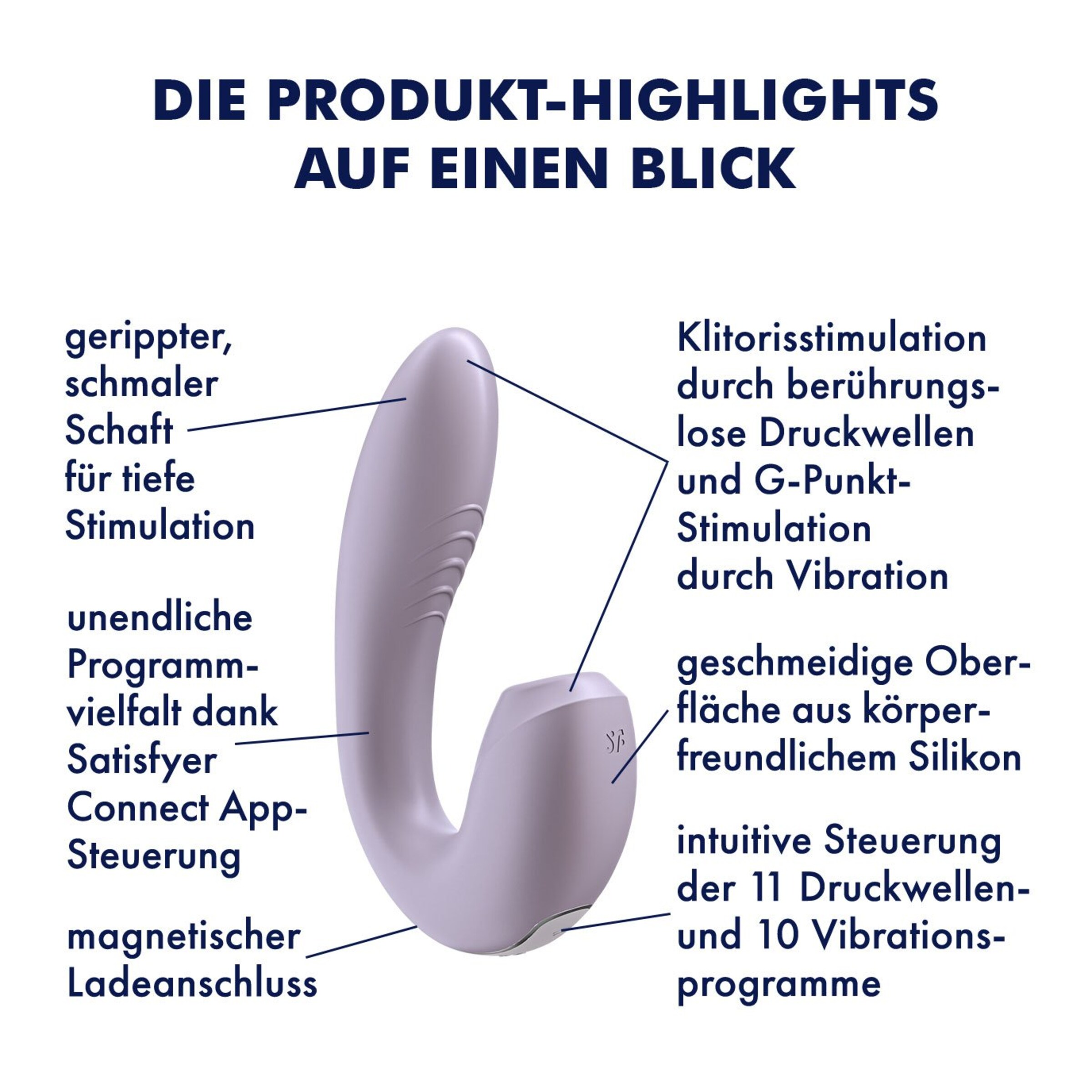 Satisfyer - viel mehr als eine deutsche Marke! Alles begann mit der berührungslosen Stimulation der Klitoris dank innovativer und patentierter Druckwellentechnologie - mittlerweile bereichert die weltweit führende Sexual Wellness Marke das Liebesleben von weit über 25.000.000 Millionen Frauen, Männern und Paaren in über 100 Ländern mit einem vielfältigen Produktsortiment sowie stets neuen Ideen und modernsten Technologien. Mit Qualitätsmerkmalen wie hochwertigem Silikon, 15 Jahren Garantie, wasserdichter (IPX7) Verarbeitung und leistungsstarken Motoren ist die deutsche Erfolgsmarke stets darauf bedacht, in ihren Produkten Technologie mit außergewöhnlichem Design zu verbinden. Alleine in den letzten Jahren hat es Satisfyer wie keine andere Firma geschafft über 474 internationale Design-Awards zu gewinnen. Darunter gleich 73x den Red Dot und 19x den IF Design Award.