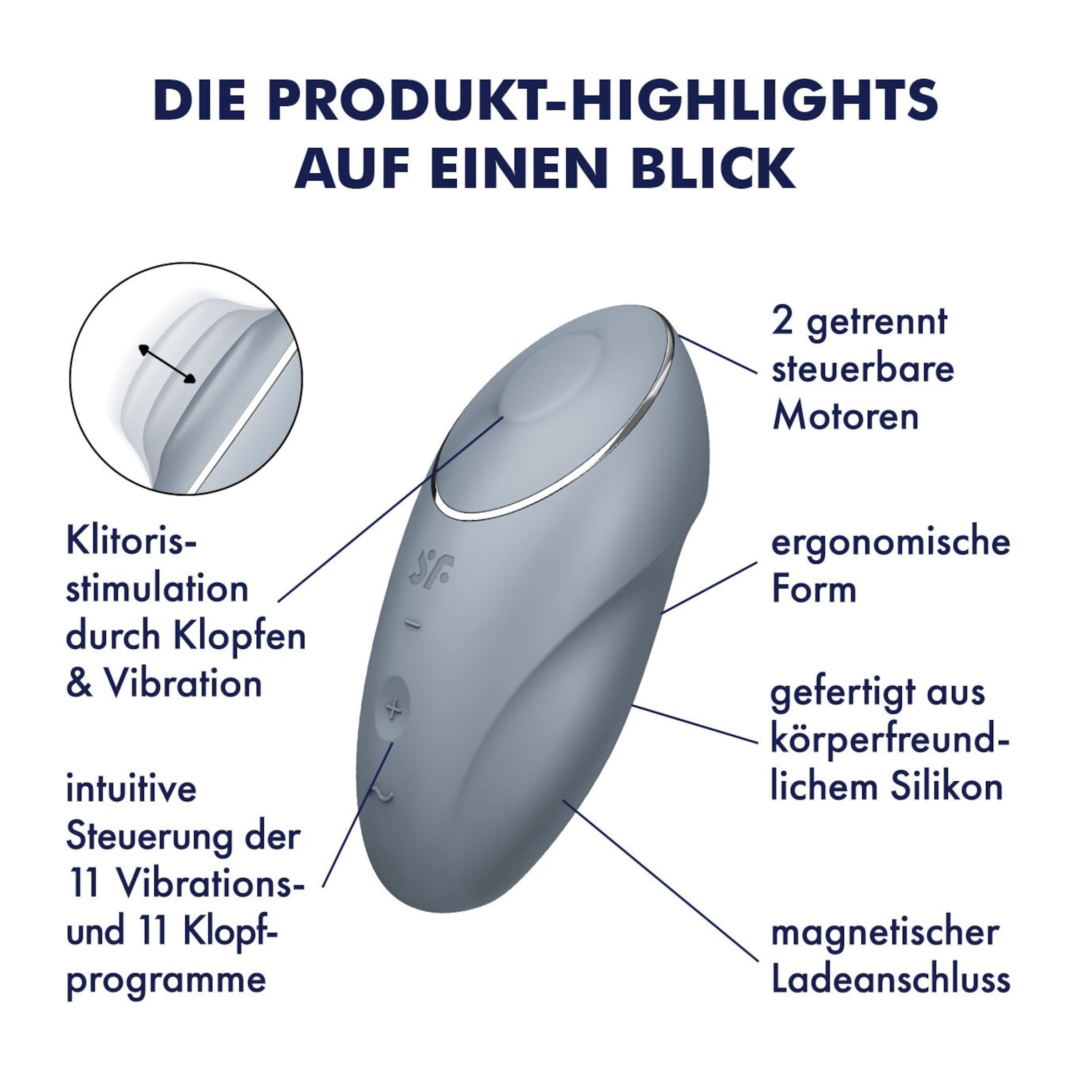 Satisfyer - viel mehr als eine deutsche Marke! Alles begann mit der berührungslosen Stimulation der Klitoris dank innovativer und patentierter Druckwellentechnologie - mittlerweile bereichert die weltweit führende Sexual Wellness Marke das Liebesleben von weit über 25.000.000 Millionen Frauen, Männern und Paaren in über 100 Ländern mit einem vielfältigen Produktsortiment sowie stets neuen Ideen und modernsten Technologien. Mit Qualitätsmerkmalen wie hochwertigem Silikon, 15 Jahren Garantie, wasserdichter Verarbeitung und leistungsstarken Motoren ist die deutsche Erfolgsmarke stets darauf bedacht, in ihren Produkten Technologie mit außergewöhnlichem Design zu verbinden. Alleine in den letzten Jahren hat es Satisfyer wie keine andere Firma geschafft über 474 internationale Design-Awards zu gewinnen. Darunter gleich 73x den Red Dot und 19x den IF Design Award.