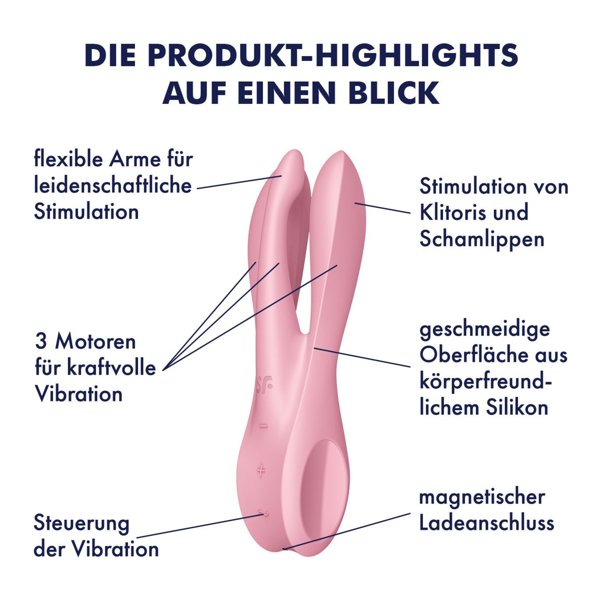 Der Satisfyer Threesome sorgt für aufregende Momente allein oder zu zweit. Die Kombination aus kraftvollen Vibrationen und innovativem Design macht das Liebesspiel abwechslungsreich und intensiv. Einfach zu bedienen und hochwertig verarbeitet ein echtes Highlight für mehr Spaß im Schlafzimmer!