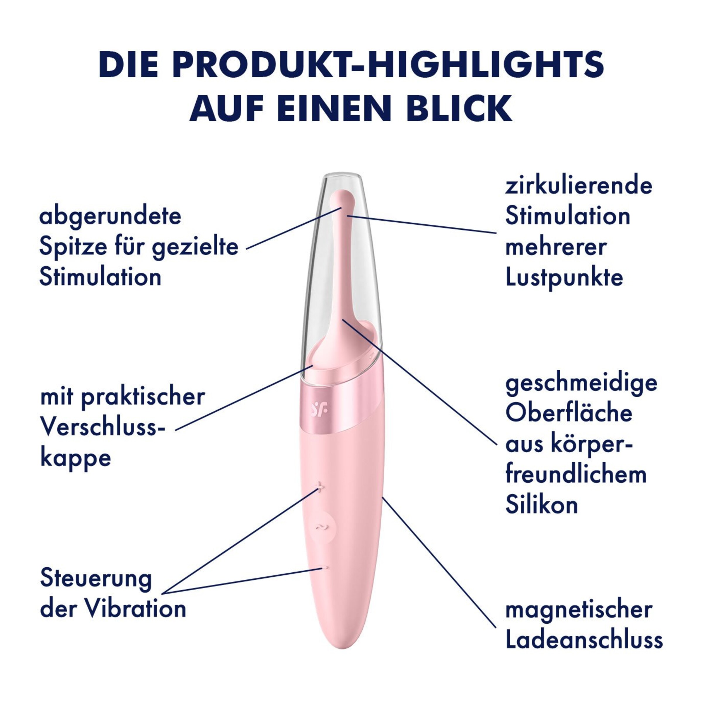 Satisfyer - viel mehr als eine deutsche Marke! Alles begann mit der berührungslosen Stimulation der Klitoris dank innovativer und patentierter Druckwellentechnologie - mittlerweile bereichert die weltweit führende Sexual Wellness Marke das Liebesleben von weit über 25.000.000 Millionen Frauen, Männern und Paaren in über 100 Ländern mit einem vielfältigen Produktsortiment sowie stets neuen Ideen und modernsten Technologien. Mit Qualitätsmerkmalen wie hochwertigem Silikon, 15 Jahren Garantie, wasserdichter (IPX7) Verarbeitung und leistungsstarken Motoren ist die deutsche Erfolgsmarke stets darauf bedacht, in ihren Produkten Technologie mit außergewöhnlichem Design zu verbinden. Alleine in den letzten Jahren hat es Satisfyer wie keine andere Firma geschafft über 474 internationale Design-Awards zu gewinnen. Darunter gleich 73x den Red Dot und 19x den IF Design Award.
