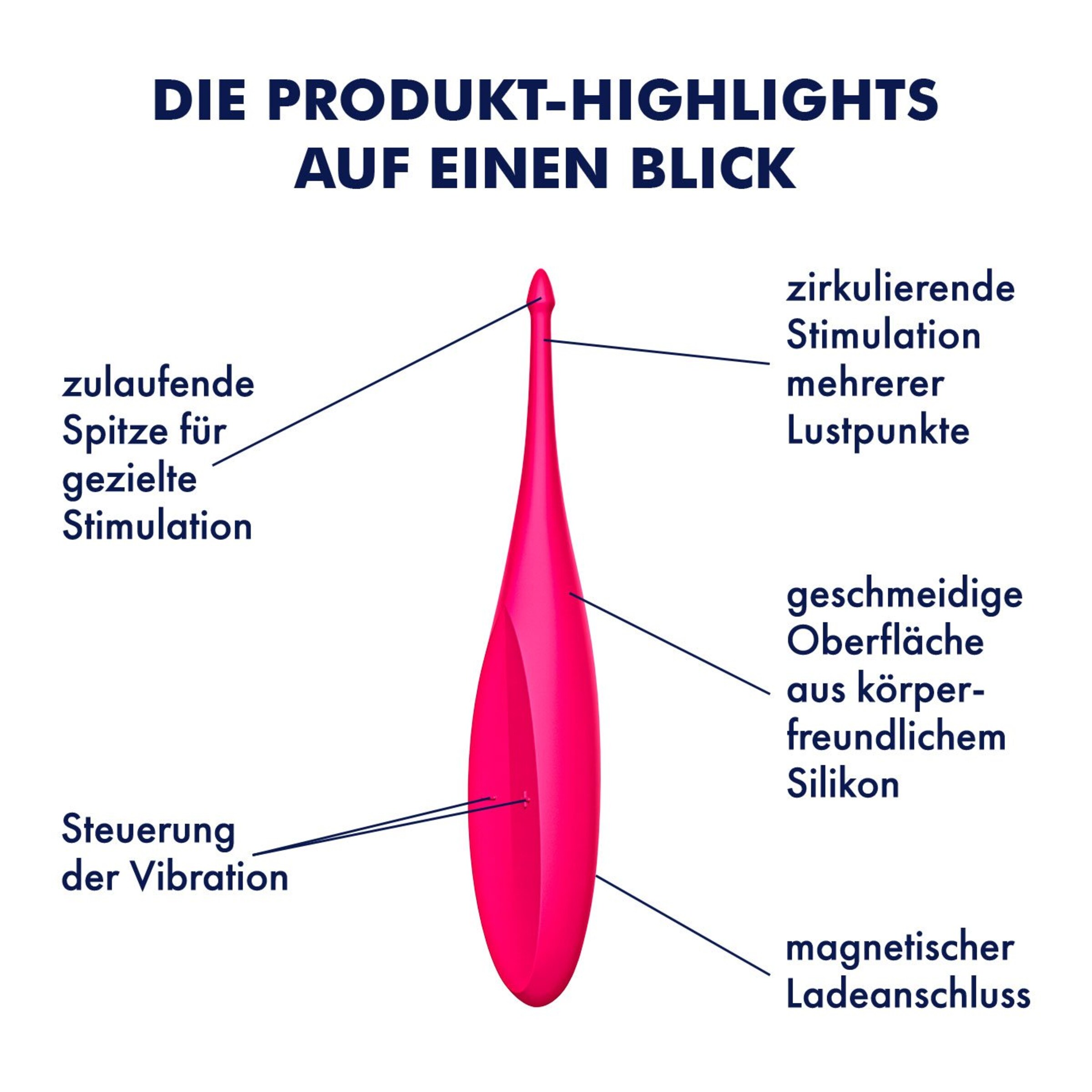 Satisfyer - viel mehr als eine deutsche Marke! Alles begann mit der berührungslosen Stimulation der Klitoris dank innovativer und patentierter Druckwellentechnologie - mittlerweile bereichert die weltweit führende Sexual Wellness Marke das Liebesleben von weit über 25.000.000 Millionen Frauen, Männern und Paaren in über 100 Ländern mit einem vielfältigen Produktsortiment sowie stets neuen Ideen und modernsten Technologien. Mit Qualitätsmerkmalen wie hochwertigem Silikon, 15 Jahren Garantie, wasserdichter (IPX7) Verarbeitung und leistungsstarken Motoren ist die deutsche Erfolgsmarke stets darauf bedacht, in ihren Produkten Technologie mit außergewöhnlichem Design zu verbinden. Alleine in den letzten Jahren hat es Satisfyer wie keine andere Firma geschafft über 474 internationale Design-Awards zu gewinnen. Darunter gleich 73x den Red Dot und 19x den IF Design Award.