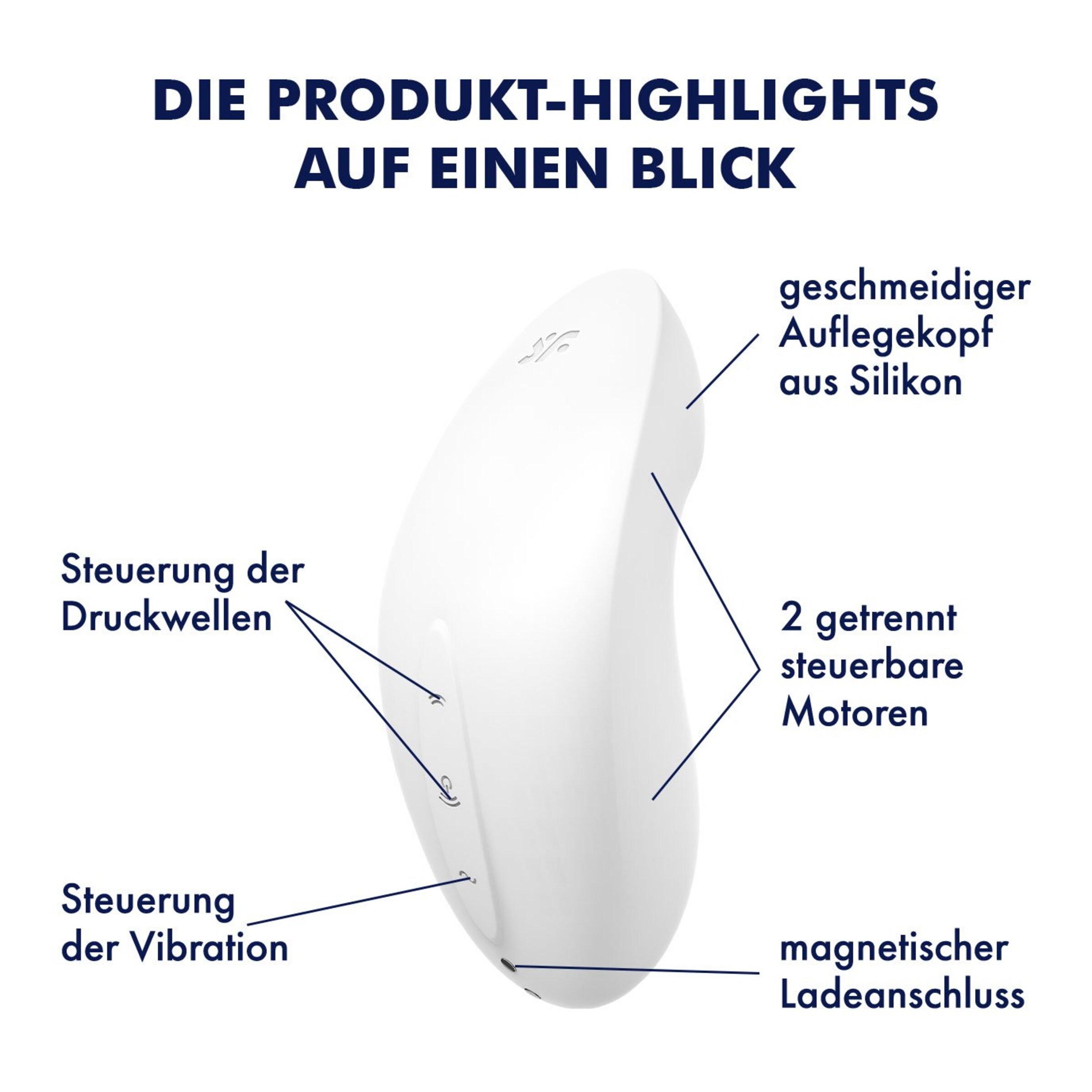 Satisfyer - viel mehr als eine deutsche Marke! Alles begann mit der berührungslosen Stimulation der Klitoris dank innovativer und patentierter Druckwellentechnologie - mittlerweile bereichert die weltweit führende Sexual Wellness Marke das Liebesleben von weit über 25.000.000 Millionen Frauen, Männern und Paaren in über 100 Ländern mit einem vielfältigen Produktsortiment sowie stets neuen Ideen und modernsten Technologien. Mit Qualitätsmerkmalen wie hochwertigem Silikon, 15 Jahren Garantie, wasserdichter (IPX7) Verarbeitung und leistungsstarken Motoren ist die deutsche Erfolgsmarke stets darauf bedacht, in ihren Produkten Technologie mit außergewöhnlichem Design zu verbinden. Alleine in den letzten Jahren hat es Satisfyer wie keine andere Firma geschafft über 474 internationale Design-Awards zu gewinnen. Darunter gleich 73x den Red Dot und 19x den IF Design Award.